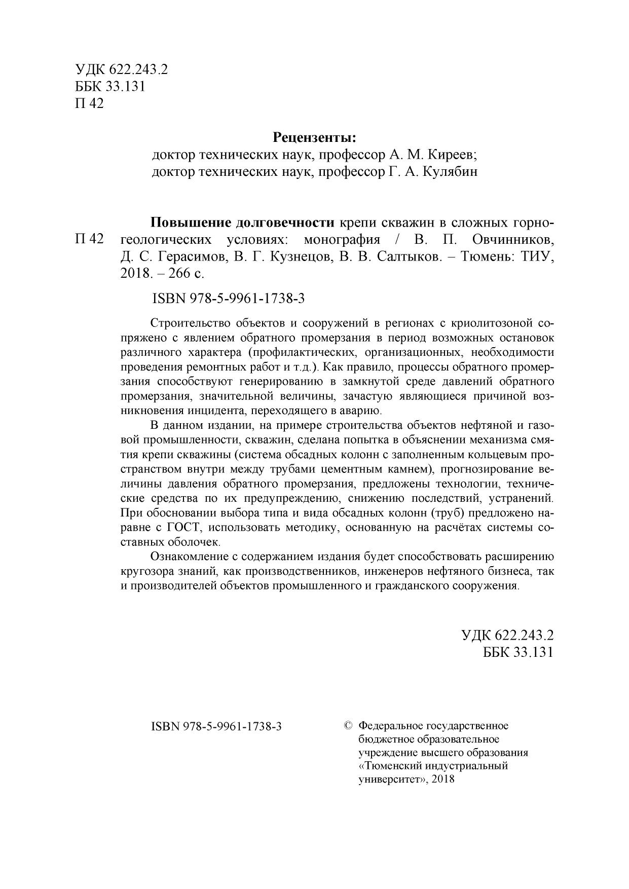 В данном издании, на примере строительства объектов нефтяной и газовой промышленности, скважин, сделана попытка в объяснении механизма смятия крепи скважины (система обсадных колонн с заполненным кольцевым пространством внутри между трубами цементным камнем), прогнозирование величины давления обратного промерзания, предложены технологии, технические средства по их предупреждению, снижению последствий, устранений.