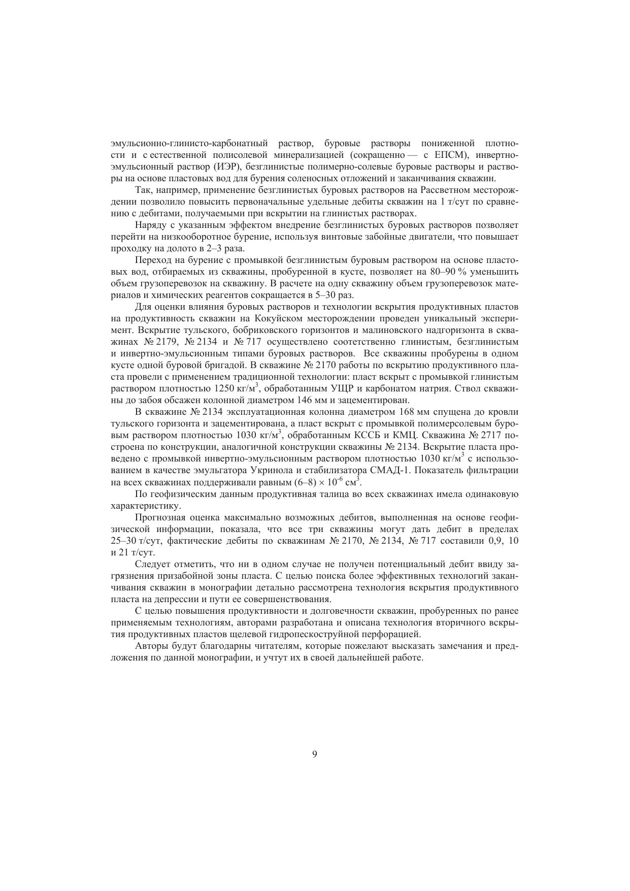 Произведен анализ факторов, влияющих на выбор параметров бурения, исходя из особенностей геолого-технических условий. Показана целесообразность и эффективность снижения плотности буровых растворов, разработаны составы растворов пониженной и низкой плотности, безглинистые растворы на основе минеральных солей и пластовых вод, а также способ получения эмульсионно-глинисто-карбонатного раствора из модифицированного нефтью глинопорошка. Разработаны технологии первичного вскрытия продуктивных пластов на депрессии и вторичного вскрытия щелевой гидропескоструйной перфорацией, определены условия их рационального применения. Приведены результаты испытаний и промышленного применения рассмотренных буровых растворов и технологий.