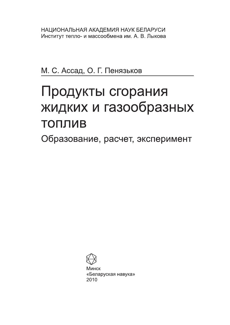 Продукты сгорания жидких и газообразных топлив: образование, расчет, эксперимент