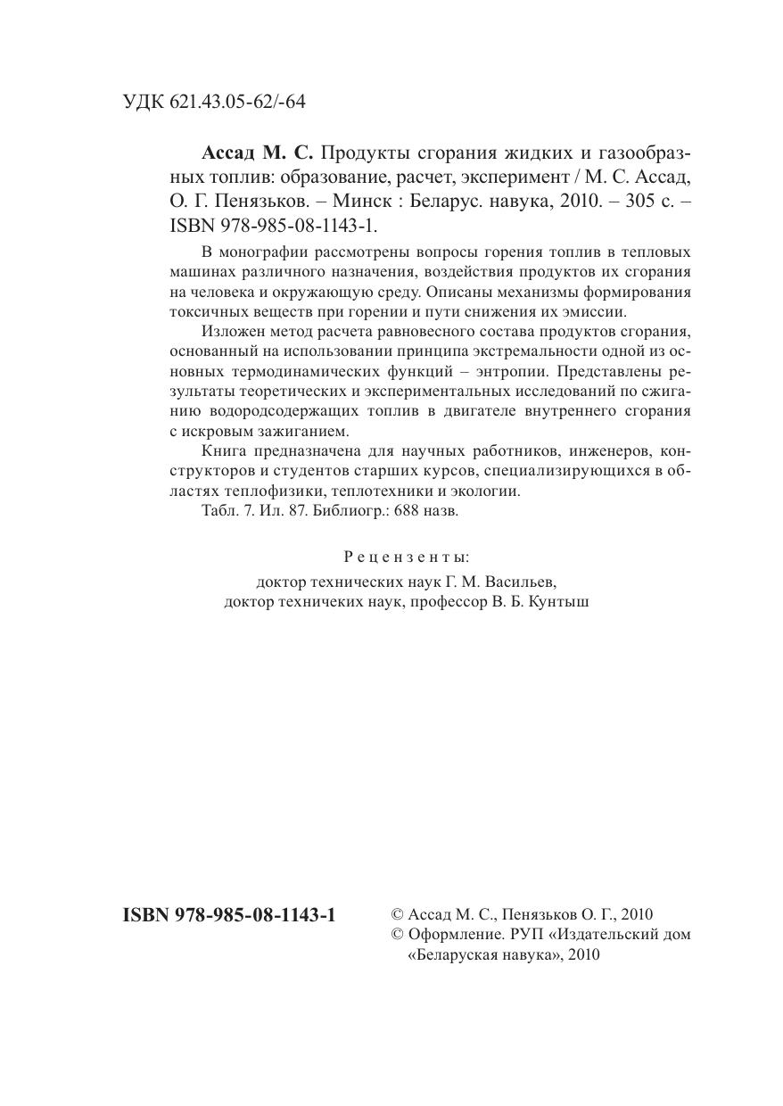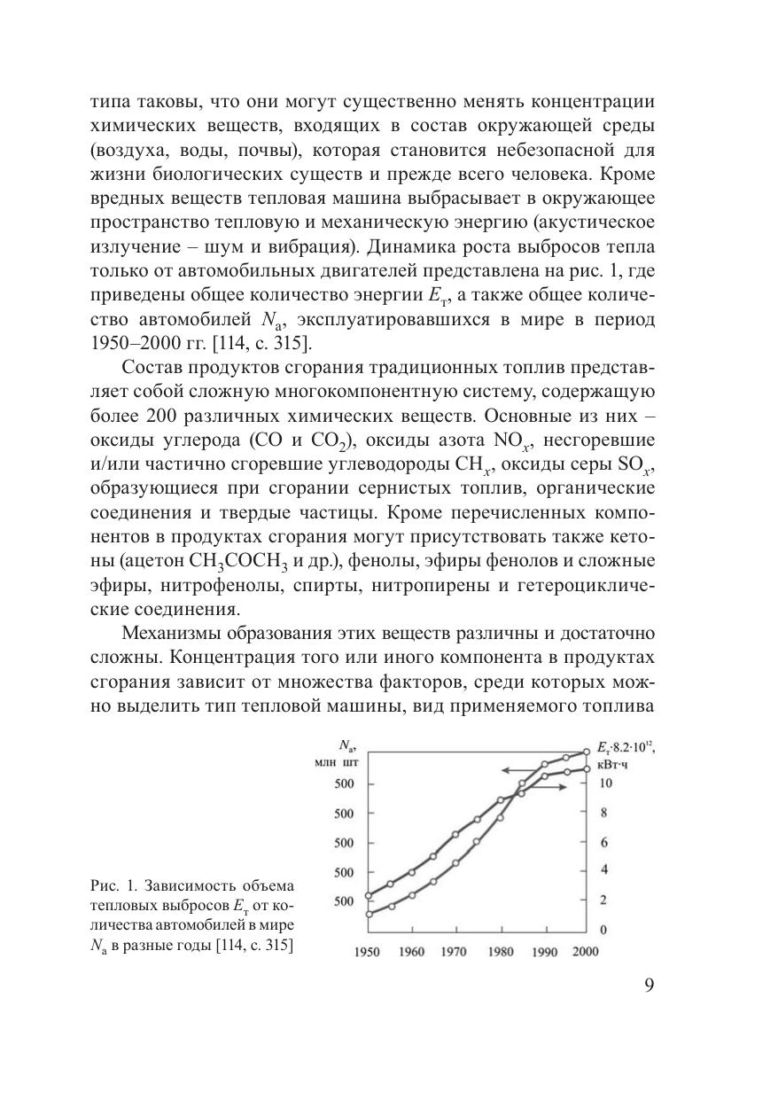 В монографии рассмотрены вопросы горения топлив в тепловых машинах различного назначения, воздействия продуктов их сгорания на человека и окружающую среду. Описаны механизмы формирования токсичных веществ при горении и пути снижения их эмиссии. Изложен метод расчета равновесного состава продуктов сгорания, основанный на использовании принципа экстремальности одной из основных термодинамических функций – энтропии. Представлены результаты теоретических и экспериментальных исследований по сжиганию водородсодержащих топлив в двигателе внутреннего сгорания с искровым зажиганием. Книга предназначена для научных работников, инженеров, конструкторов и студентов старших курсов, специализирующихся в областях теплофизики, теплотехники и экологии.