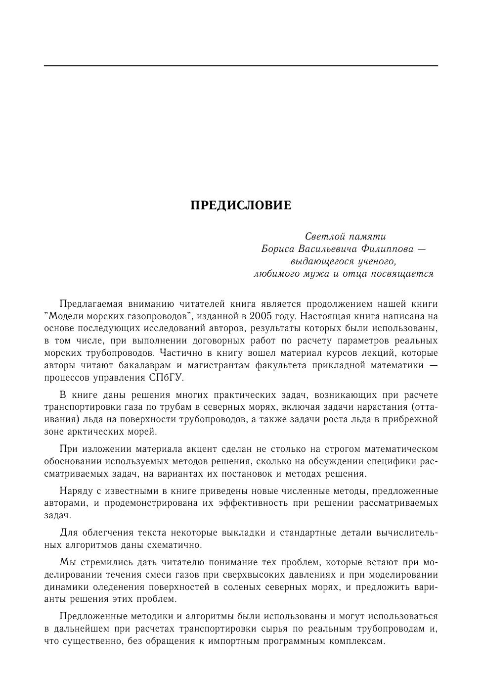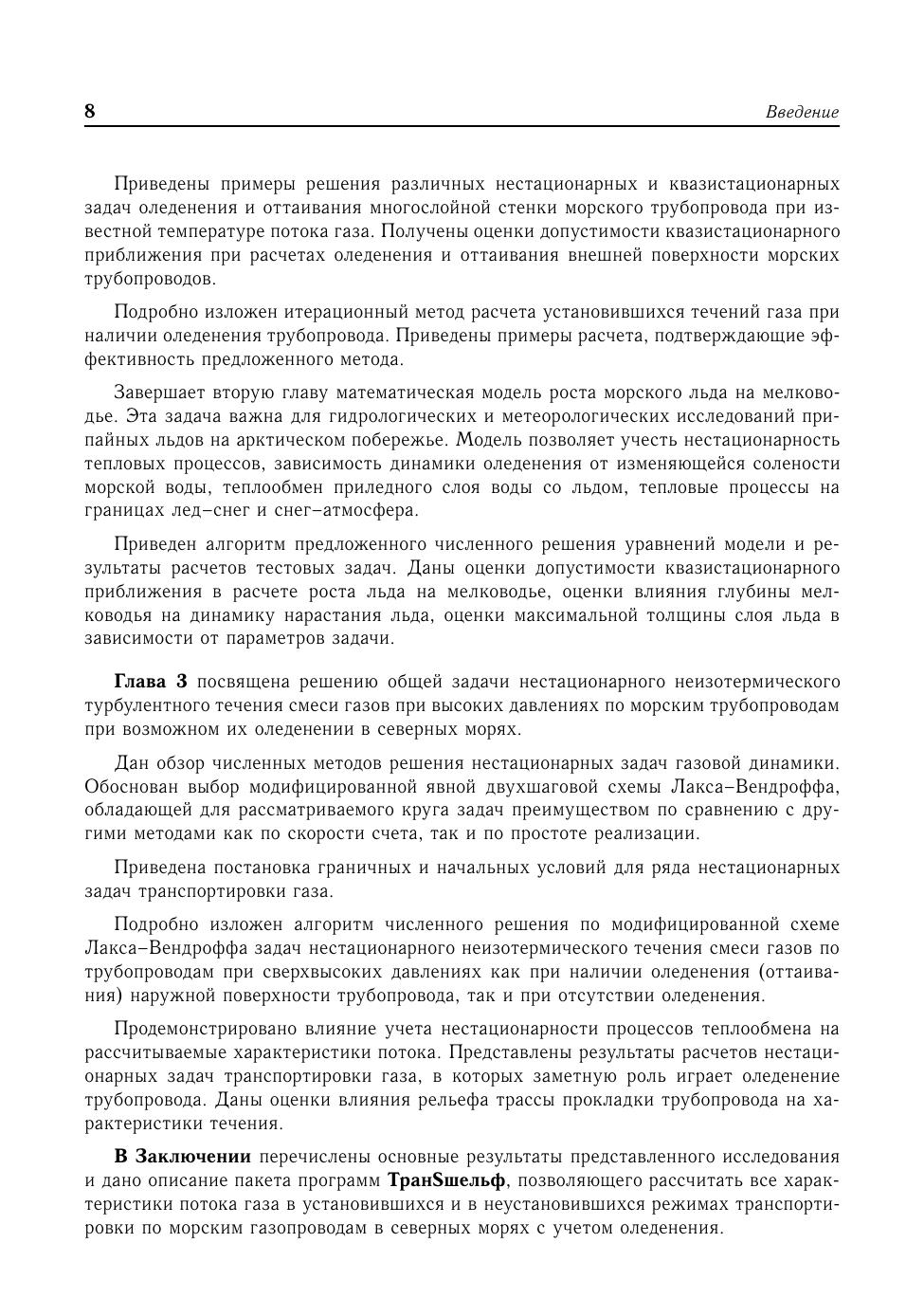 В книге предложены модели транспортировки природного газа по морским трубопроводам в северных морях, учитывающие специфику арктического шельфа и особенности замерзания соленой морской воды. Представлены решения многих практических задач, включая задачи оледенения трубопровода. Приведены оригинальные численные методы решения двухфазных и однофазных задач Стефана и продемонстрирована их эффективность при расчете оледенения и оттаивания поверхности морских трубопроводов. Представлено детальное описание всех предложенных методик и алгоритмов, которые могут использоваться при расчете транспортировки сырья по реальным трубопроводам без обращения к коммерческим пакетам.