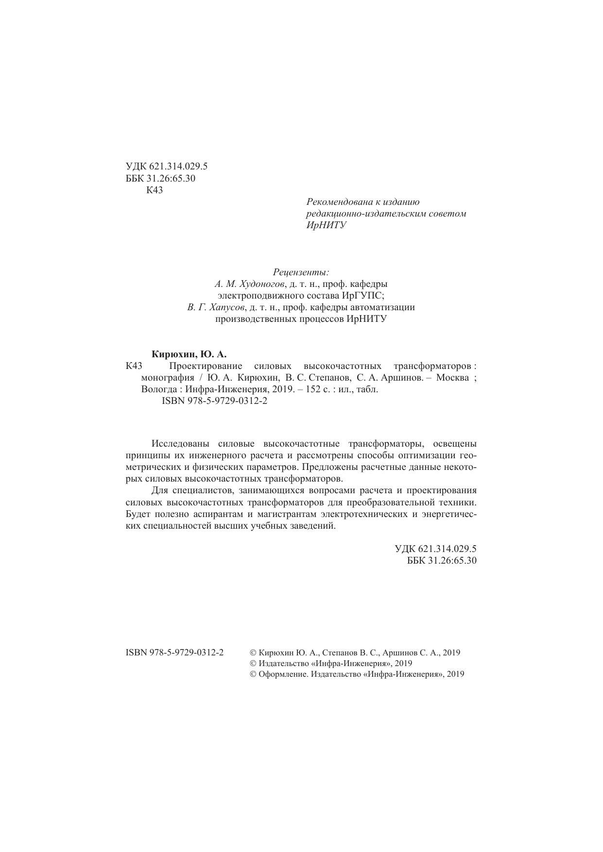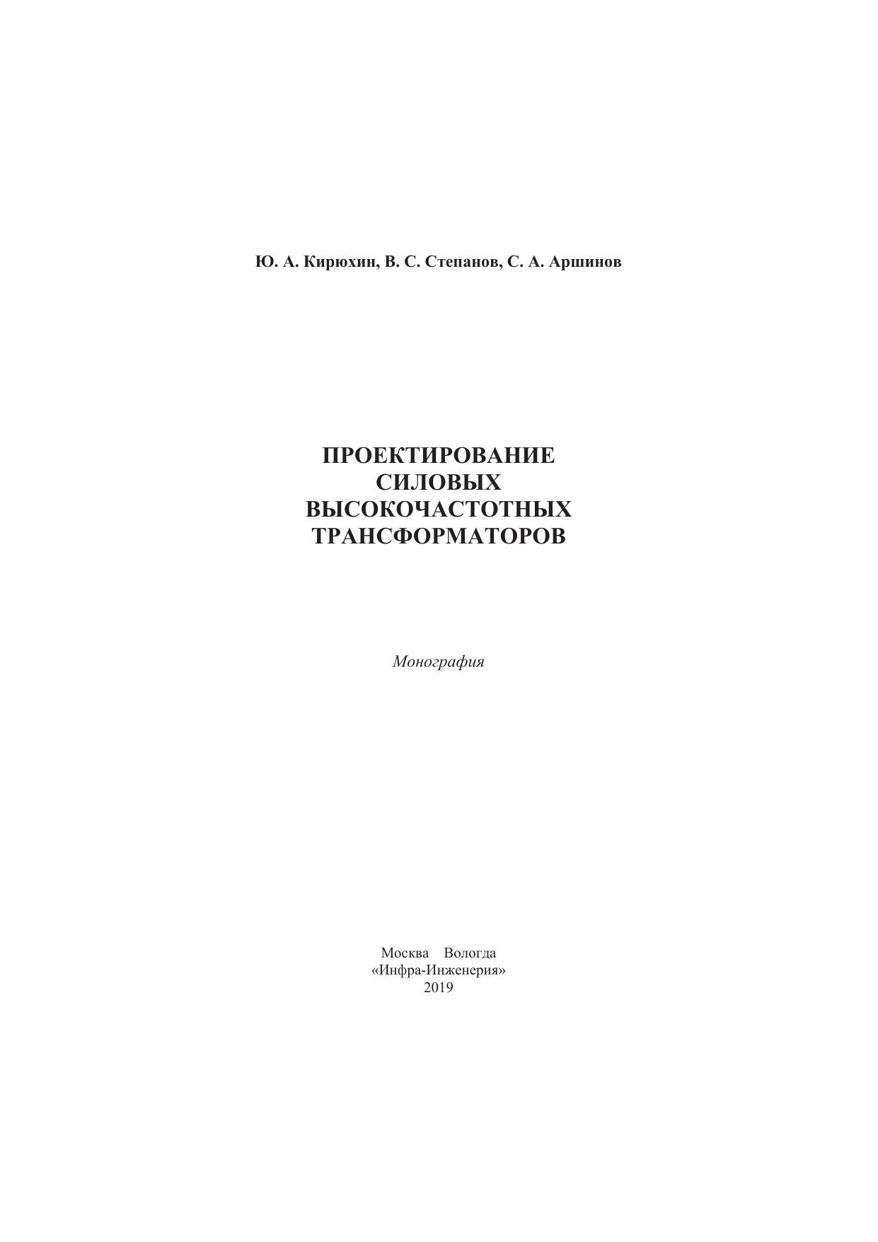 Для специалистов, занимающихся вопросами расчета и проектирования силовых высокочастотных трансформаторов для преобразовательной техники. Будет полезно аспирантам и магистрантам электротехнических и энергетических специальностей высших учебных заведений.