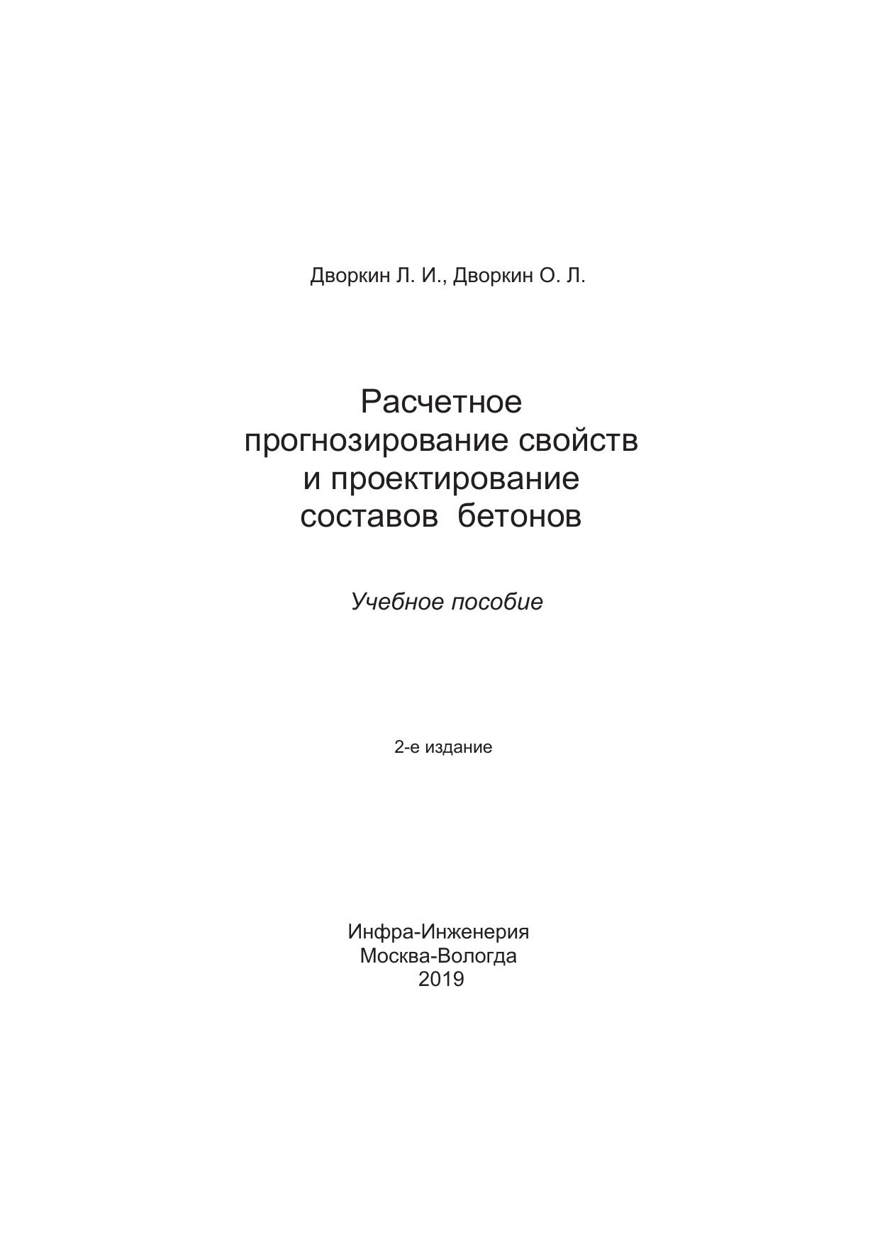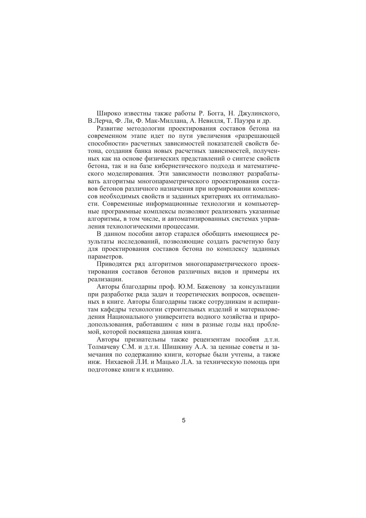 Изложены основные расчетные методики прогнозирования основных свойств бетона на основе структурно-физических представлений и экспериментально-статистических моделей. Приведены основы методологии проектирования составов бетона с комплексом заданных проектных показателей. Рассмотрены алгоритмы и примеры решения задач проектирования составов бетона различных видов, а также их корректирования и адаптации в производственных условиях.