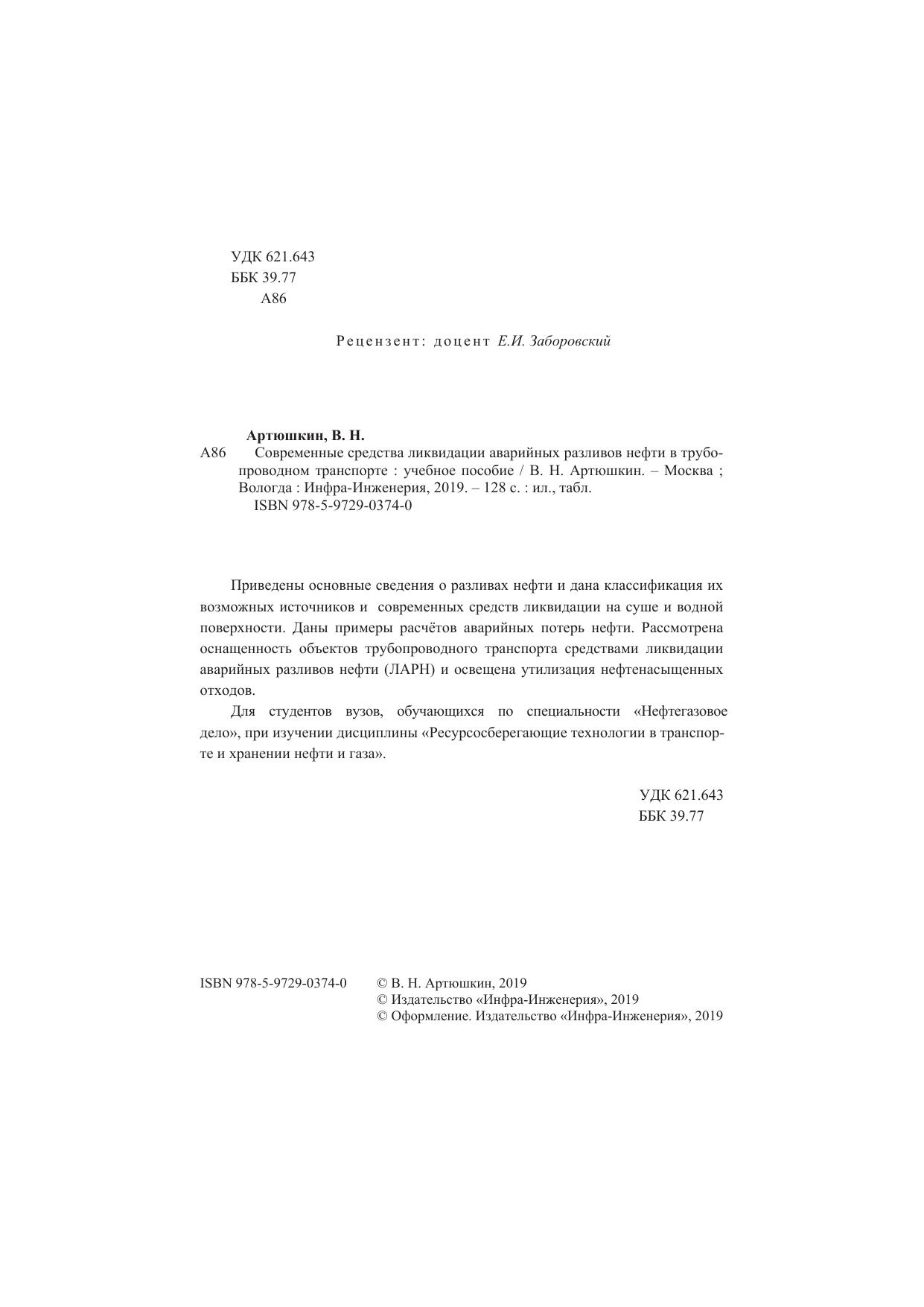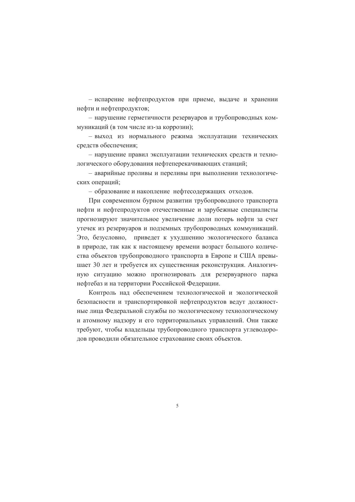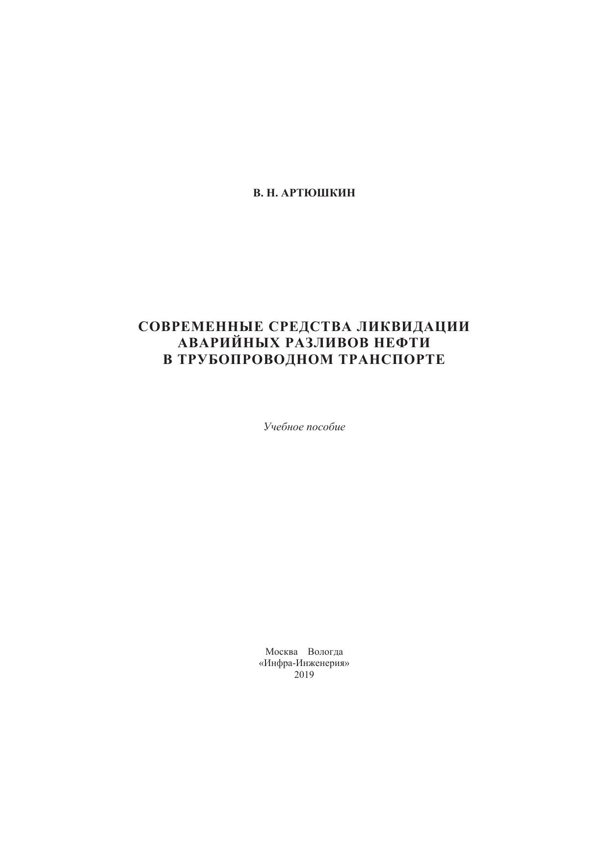 Приведены основные сведения о разливах нефти и дана классификация их возможных источников и современных средств ликвидации на суше и водной поверхности. Даны примеры расчётов аварийных потерь нефти. Рассмотрена оснащенность объектов трубопроводного транспорта средствами ликвидации аварийных разливов нефти (ЛАРН) и освещена утилизация нефтенасыщенных отходов.