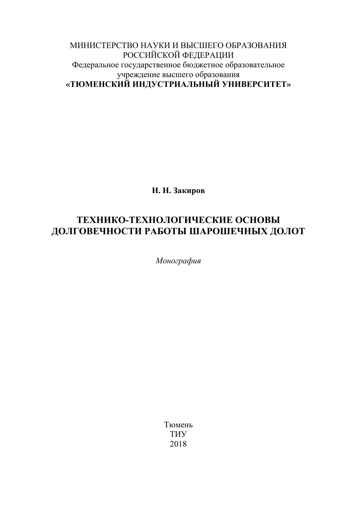 В монографии представлены обобщённые результаты теоретических и экспериментальных исследований, технико-технологических основ повышения долговечности работы буровых шарошечных долот. Предложены перспективные направления повышения эффективности, надёжности шарошечных долот.