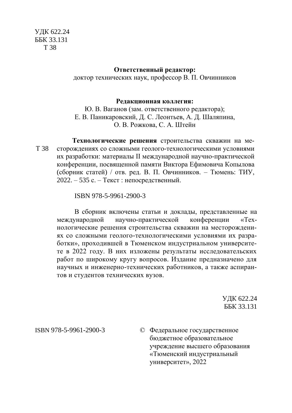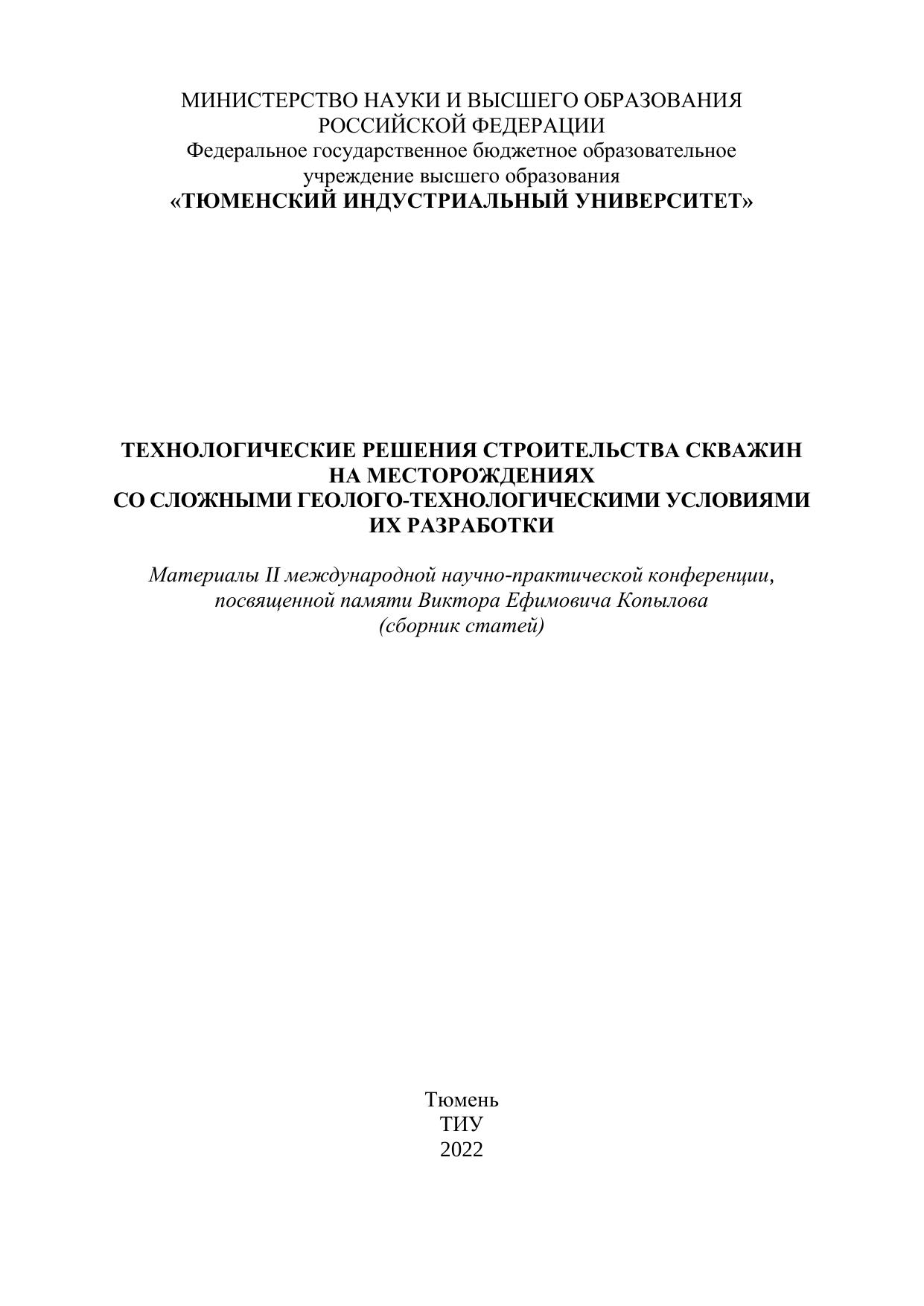 В сборник включены статьи и доклады, представленные на международной научно-практической конференции «Технологические решения строительства скважин на месторождениях со сложными геолого-технологическими условиями их разработки», проходившей в Тюменском индустриальном университете в 2022 году. В них изложены результаты исследовательских работ по широкому кругу вопросов. Издание предназначено для научных и инженерно-технических работников, а также аспирантов и студентов технических вузов.