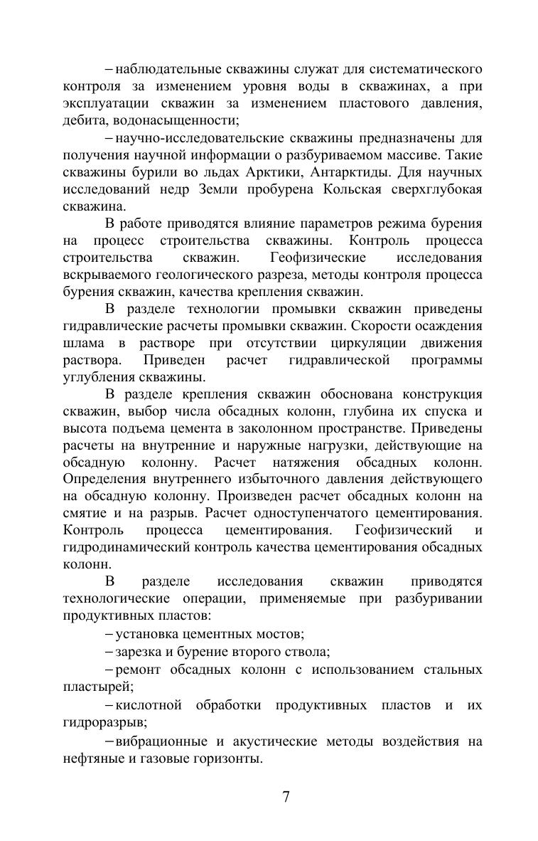 В учебнике обосновываются режимы бурения скважин, технологии строительства скважин и технологии промывки в процессе бурения, изложены расчеты для подготовки скважин к исследованиям, дано обоснование крепления скважин и оснастки обсадных колонн. Предложены расчеты нагрузок, действующих на обсадную колонну. Освещены объемы и методы геофизических исследований, скважин, технологий и капитального ремонта, консервации и ликвидации скважин. Соответствует требованиям федеральных государственных образовательных стандартов среднего профессионального образования последнего поколения. Предназначен для студентов среднего профессионального образования, обучающихся по специальности «Бурение нефтяных и газовых скважин», а также для преподавателей ссузов, работников топливно-энергетических комплексов, производственных геолого-разведочных и нефтегазодобывающих предприятий, научных и проектных организаций.