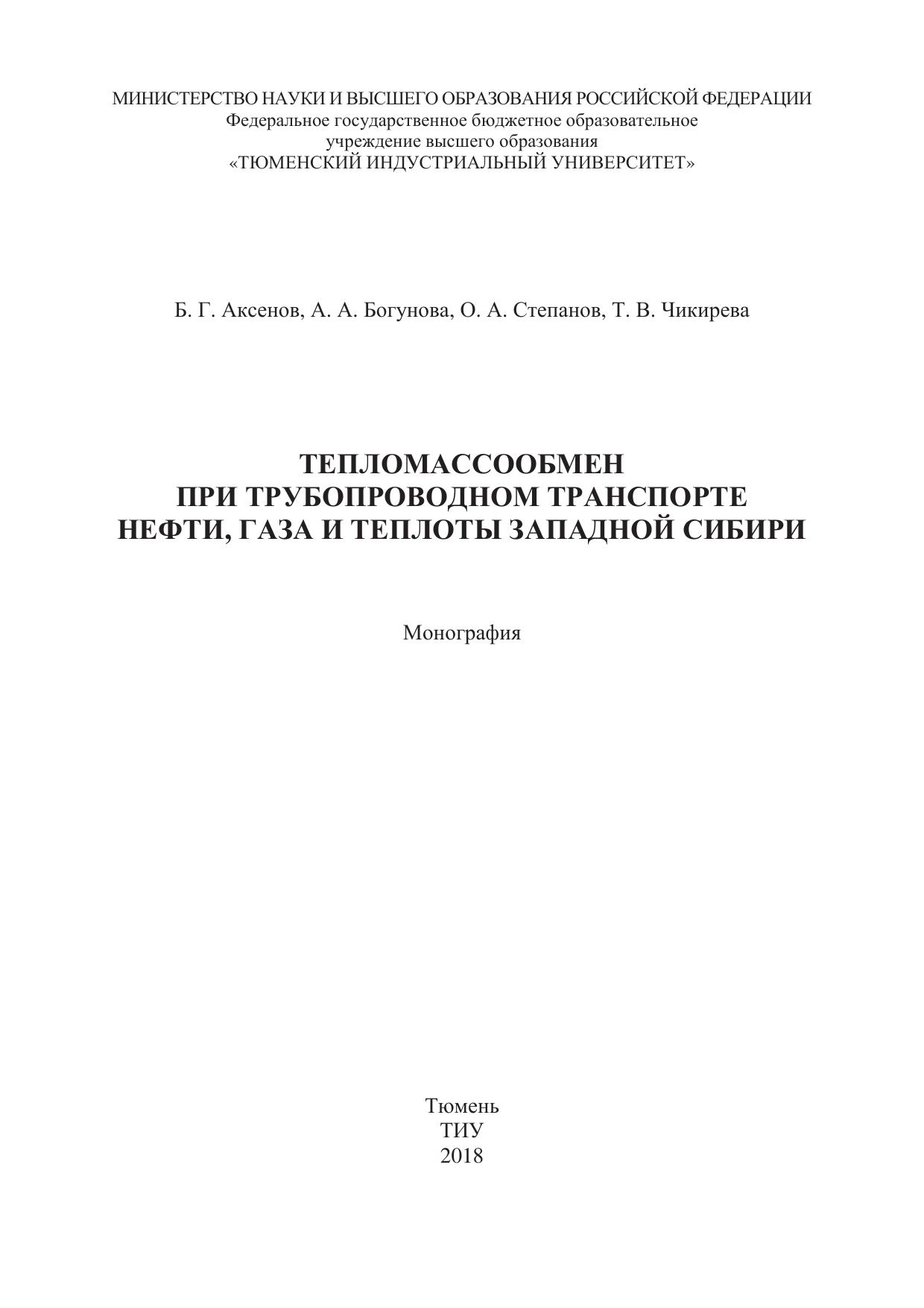 Тепломассообмен при трубопроводном транспорте нефти, газа и теплоты Западной Сибири