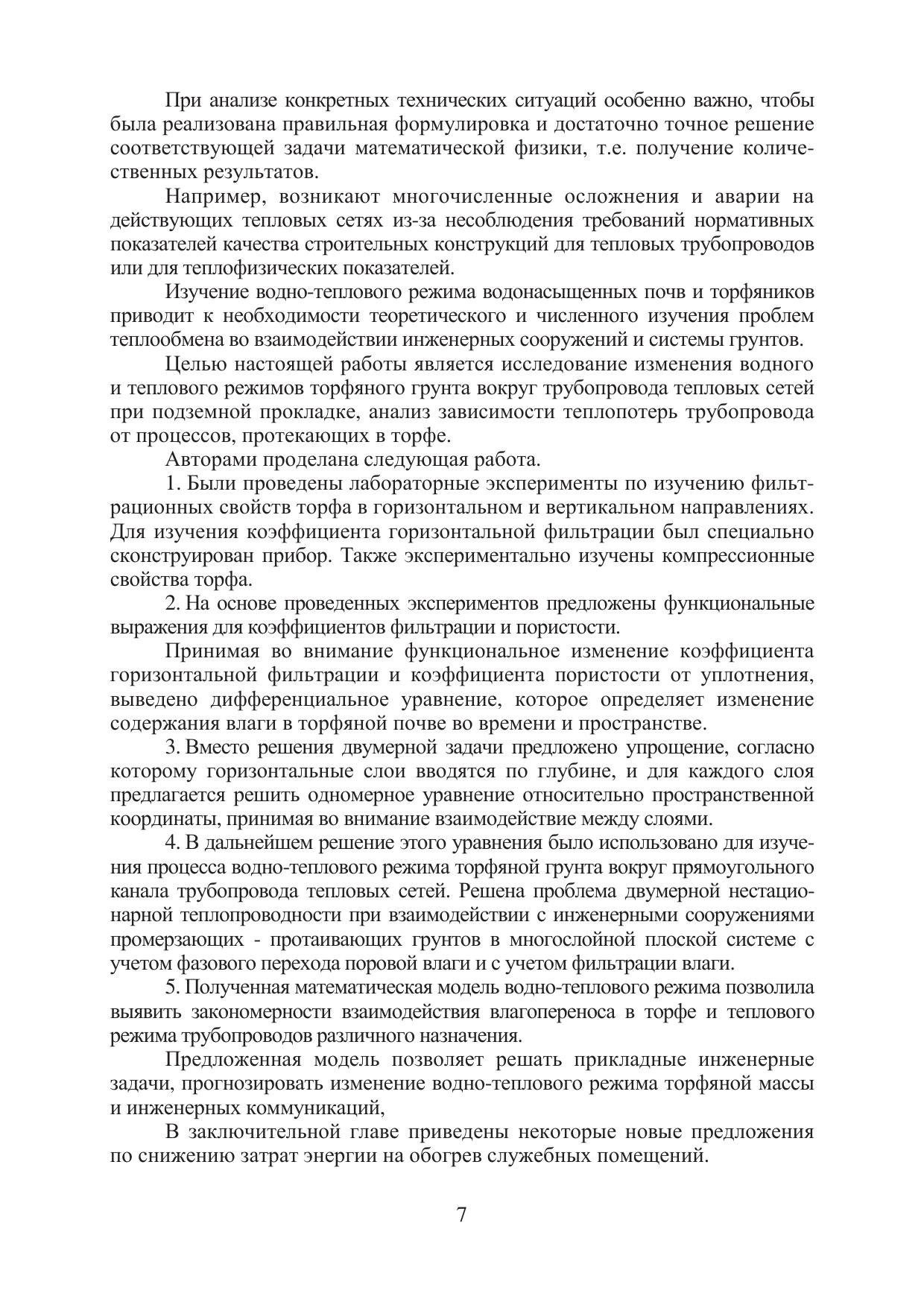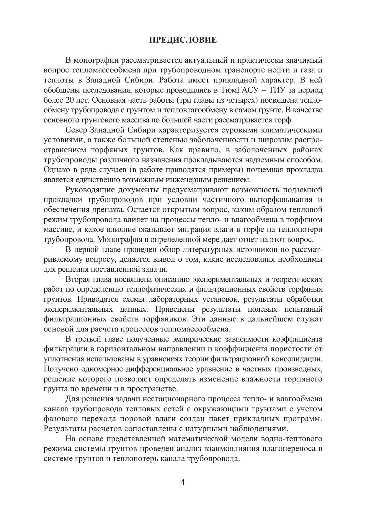 В монографии рассмотрены вопросы изменения водного и теплового режимов торфяного грунта вокруг трубопровода при подземной прокладке, анализ зависимости теплопотерь трубопровода от процессов, протекающих в торфе, тепловой режим служебных помещений.