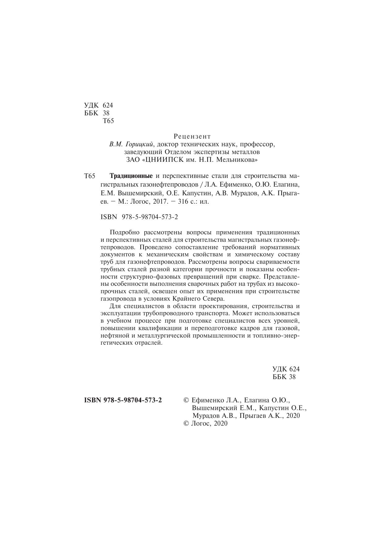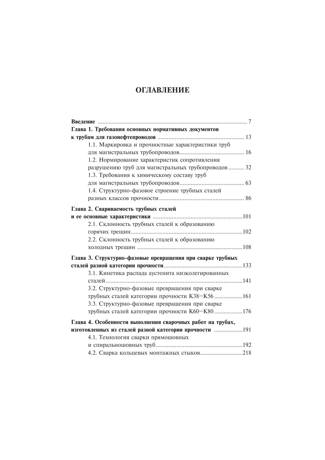 Подробно рассмотрены вопросы применения традиционных и перспективных сталей для строительства магистральных газонефтепроводов. Проведено сопоставление требований нормативных документов к механическим свойствам и химическому составу труб для газонефтепроводов. Рассмотрены вопросы свариваемости трубных сталей разной категории прочности и показаны особенности структурно-фазовых превращений при сварке. Представлены особенности выполнения сварочных работ на трубах из высокопрочных сталей, освещен опыт их применения при строительстве газопровода в условиях Крайнего Севера. Для специалистов в области проектирования, строительства и эксплуатации трубопроводного транспорта. Может использоваться в учебном процессе при подготовке специалистов всех уровней, повышении квалификации и переподготовке кадров для газовой, нефтяной и металлургической промышленности и топливно-энергетических отраслей.