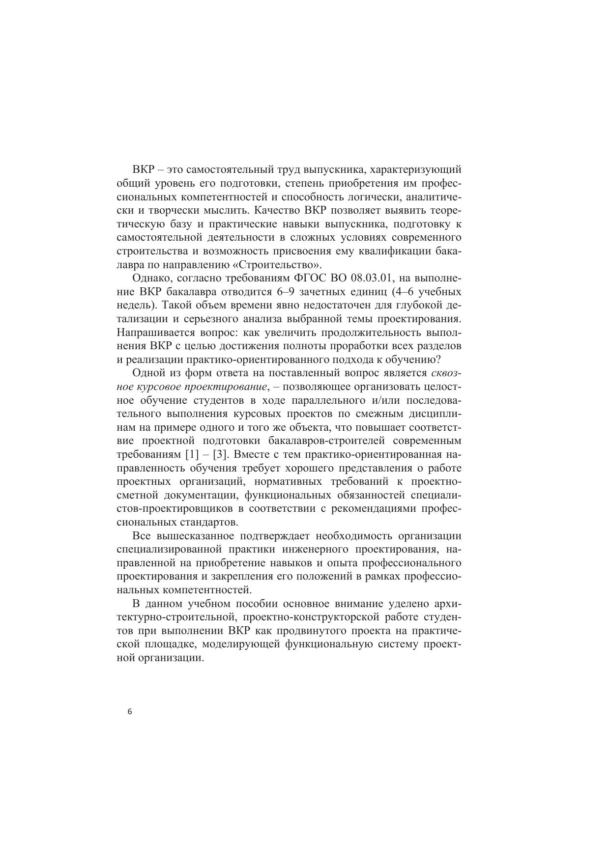 Рассмотрена организация учебного архитектурно-строительного проектирования в рамках подготовки бакалавров по направлению 08.03.01 «Строительство». Даны указания по разработке, оформлению, нормированию и применению технологических процессов проектирования при выполнении студентами выпускной квалификационной работы как единого проекта в рамках сквозного проектирования.