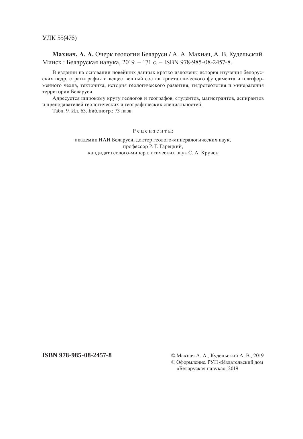 В издании на основании новейших данных кратко изложены история изучения белорусских недр, стратиграфия и вещественный состав кристаллического фундамента и платформенного чехла, тектоника, история геологического развития, гидрогеология и минерагения территории Беларуси. Адресуется широкому кругу геологов и географов, студентов, магистрантов, аспирантов и преподавателей геологических и географических специальностей.