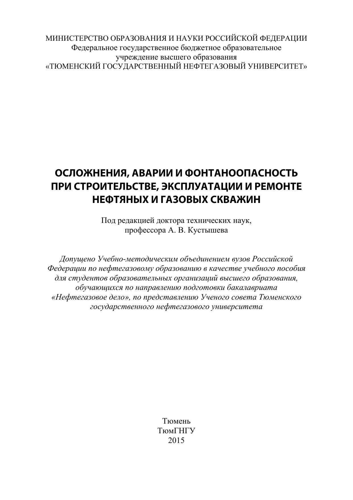 Осложнения, аварии и фонтаноопасность при строительстве, эксплуатации и ремонте нефтяных и газовых скважин и ремонте нефтяных и газовых скважин: учебное пособие