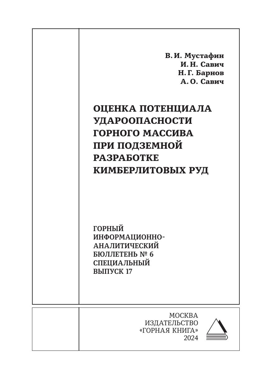 Оценка потенциала удароопасности горного массива при подземной разработке кимберлитовых руд: горный информационно-аналитический бюллетень № 6. Специальный выпуск 17