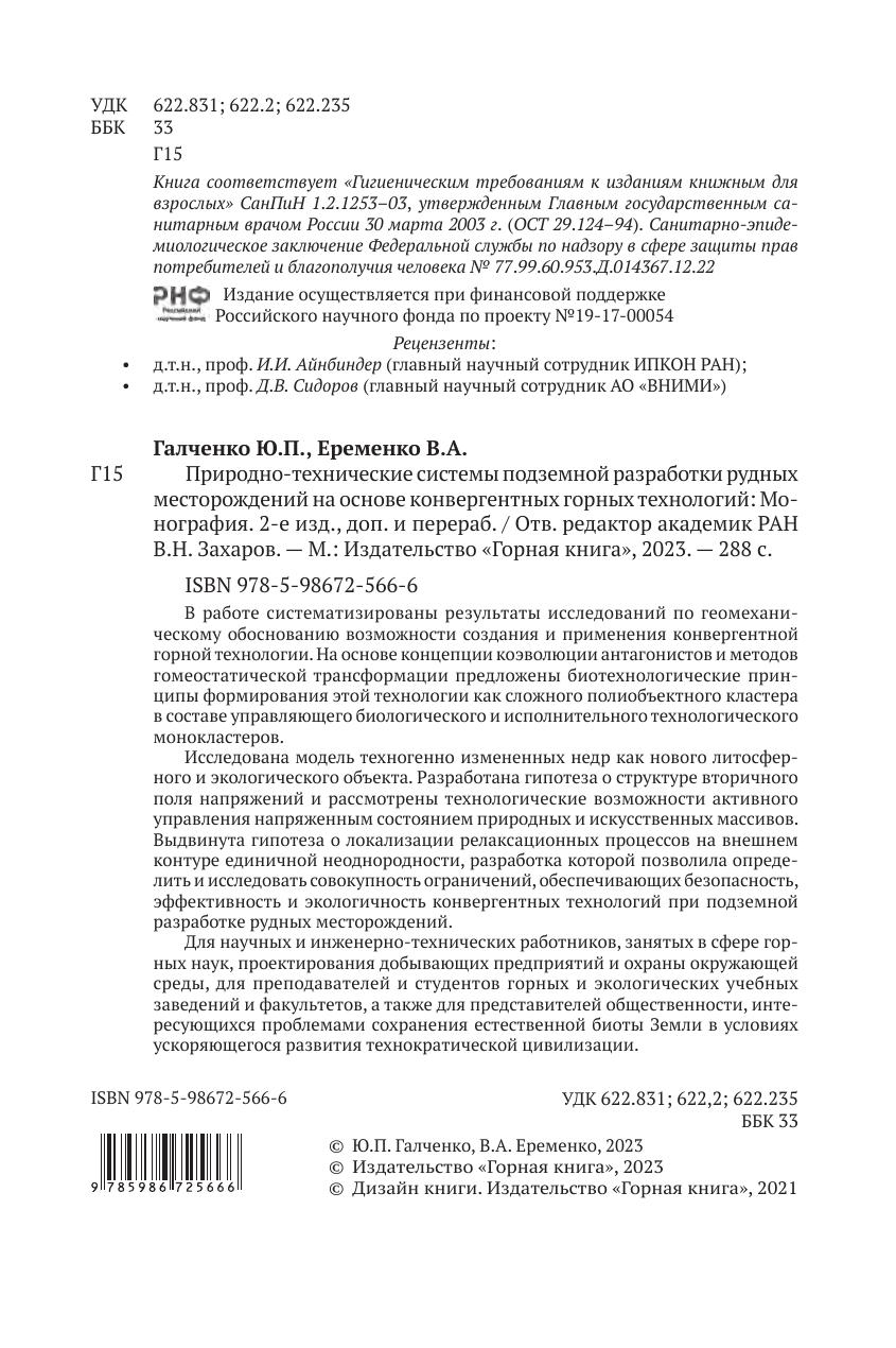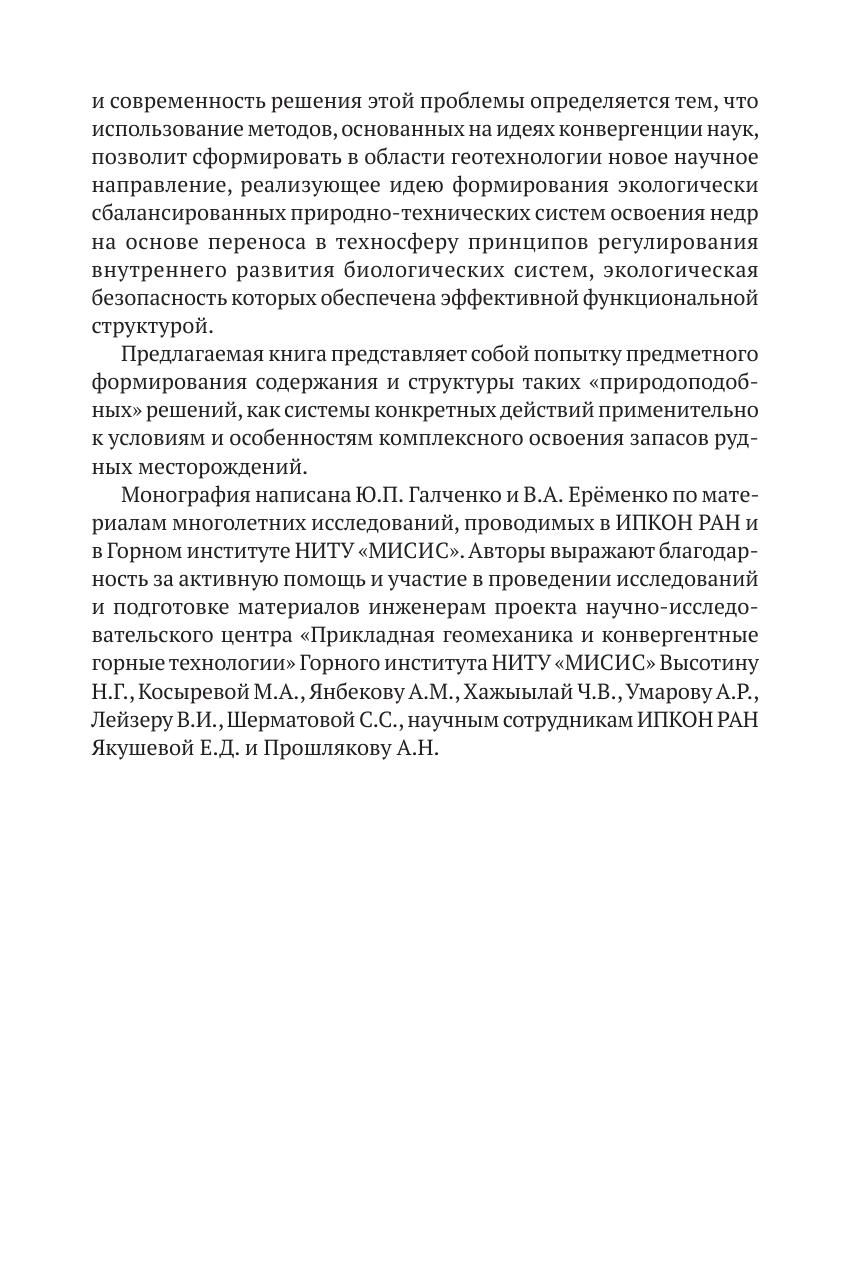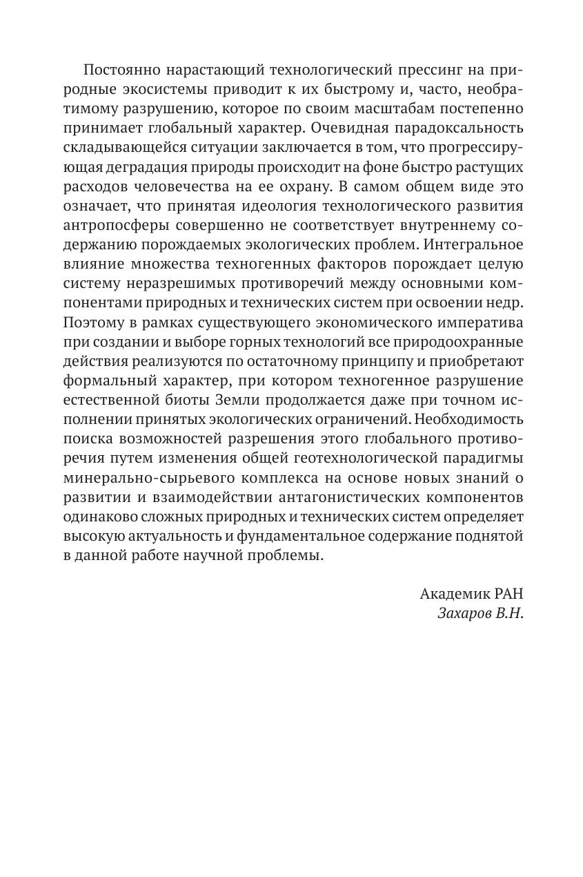 поля напряжений и рассмотрены технологические возможности активного управления напряженным состоянием природных и искусственных массивов. Выдвинута гипотеза о локализации релаксационных процессов на внешнем контуре единичной неоднородности, разработка которой позволила определить и исследовать совокупность ограничений, обеспечивающих безопасность, эффективность и экологичность конвергентных технологий при подземной разработке рудных месторождений. Для научных и инженерно-технических работников, занятых в сфере горных наук, проектирования добывающих предприятий и охраны окружающей среды, для преподавателей и студентов горных и экологических учебных заведений и факультетов, а также для представителей общественности, интересующихся проблемами сохранения естественной биоты Земли в условиях ускоряющегося развития технократической цивилизации.