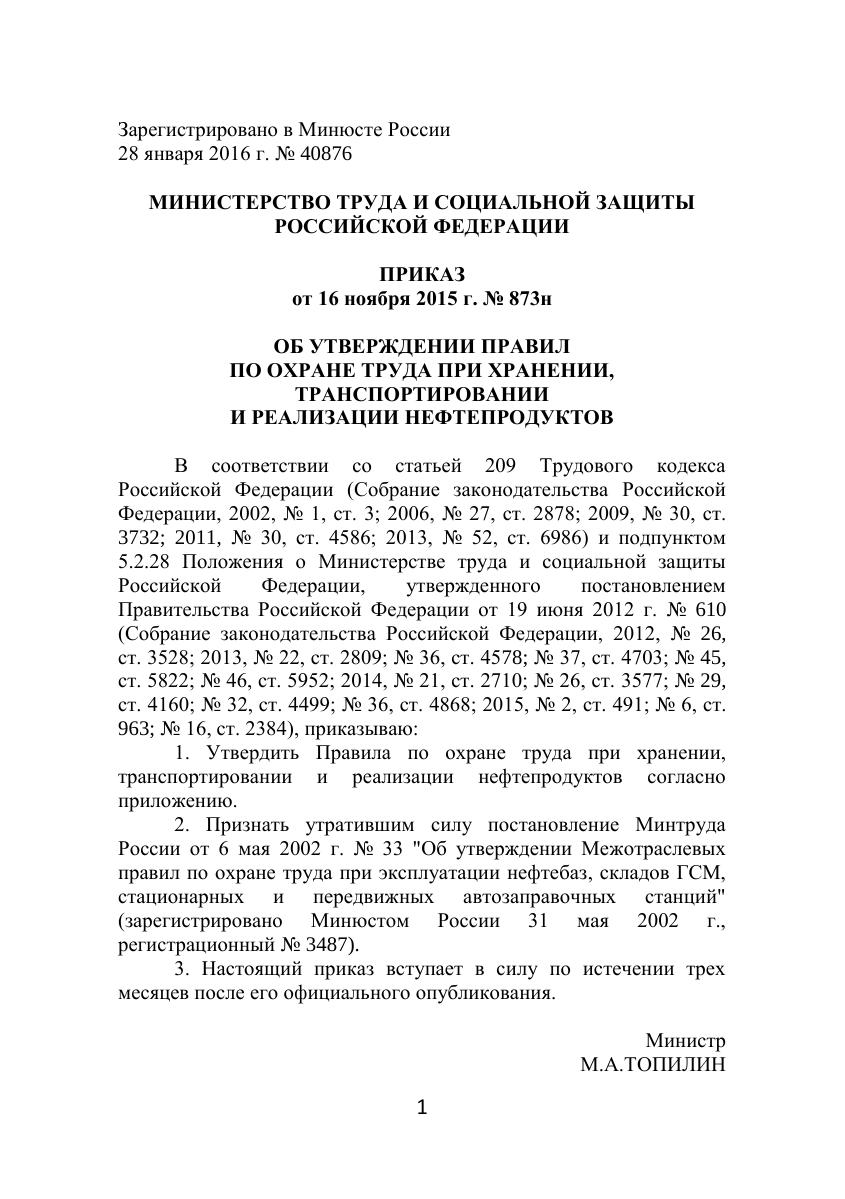 Правила по охране труда при хранении, транспортировании и реализации нефтепродуктов