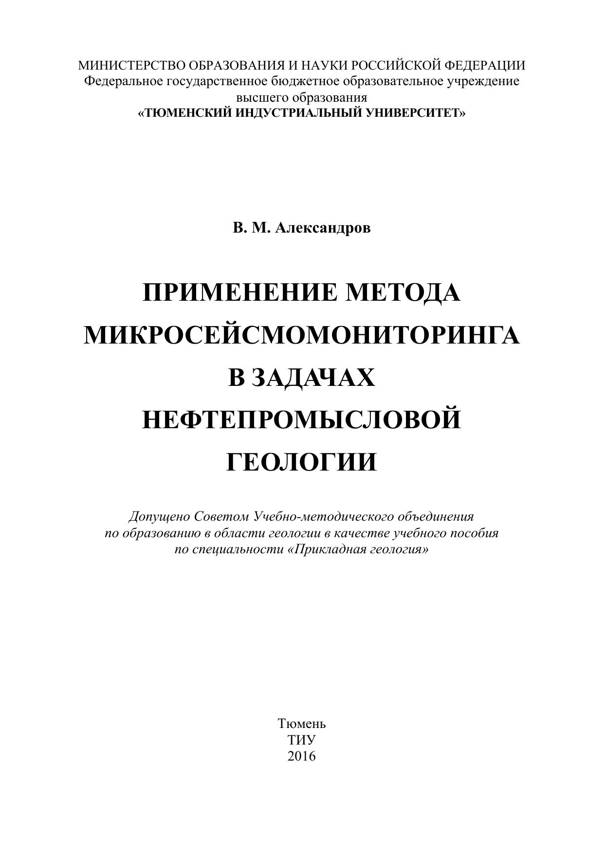 Применение метода микросейсмомониторинга в задачах нефтепромысловой геологии: монография