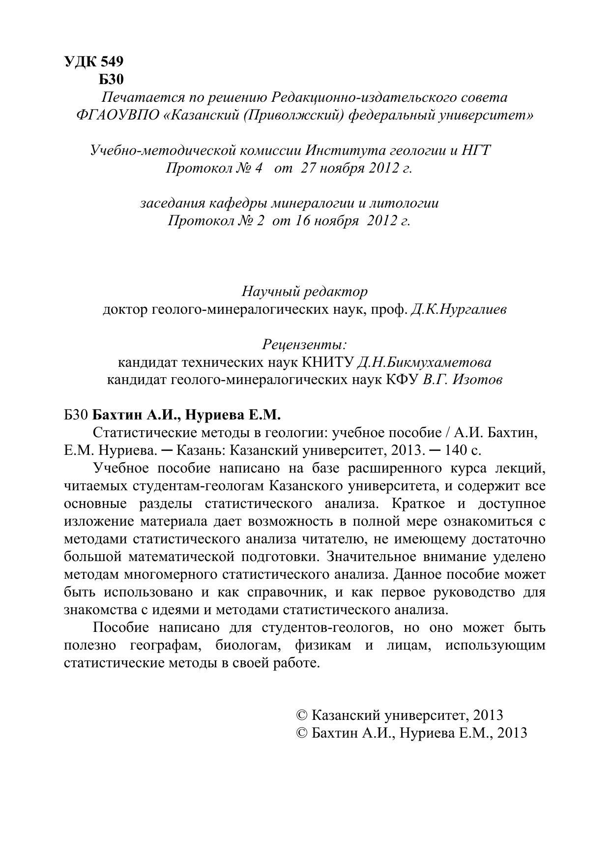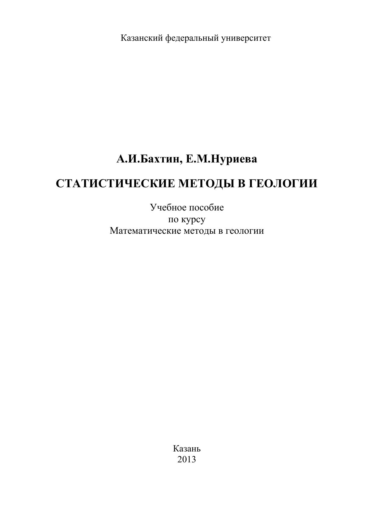 Пособие написано для студентов-геологов, но оно может быть полезно географам, биологам, физикам и лицам, использующим статистические методы в своей работе.
