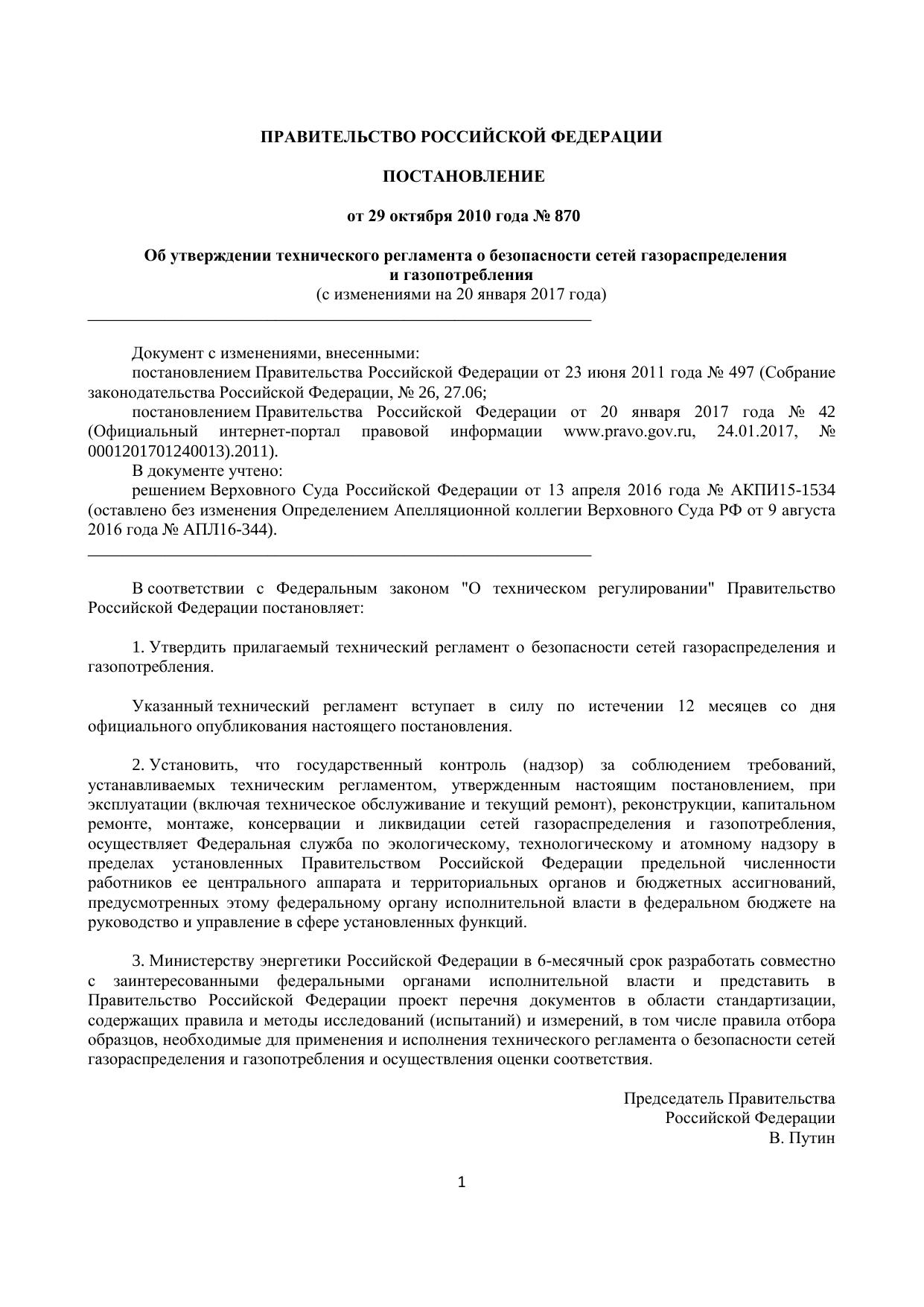Технический регламент о безопасности сетей газораспределения и газопотребления (с изменениями на 20 января 2017 года)