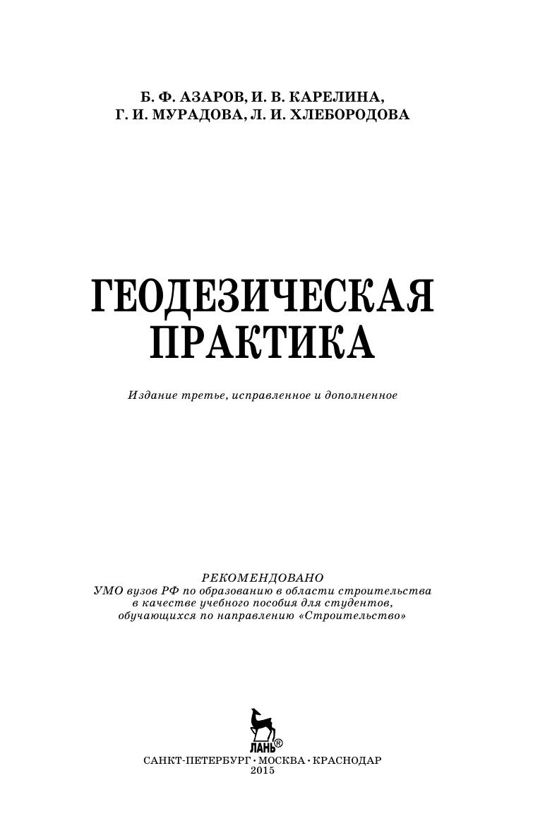 Учебное пособие содержит указания по проведению геодезической и проектно-изыскательской практик. Подробно рассмотрены классические и современные геодезические приборы, их устройство, поверки и юстировки. Приведены сведения о решении различных инженерно-геодезических задач на местности. Изложены основные способы выполнения крупномасштабной топографической съемки, вертикальной планировки участков, полевого трассирования линейных сооружений. Описана подготовка разбивочных данных при выносе сооружения на местность. Соответствует современным требованиям Федерального государственного образовательного стандарта среднего профессионального образования и профессиональным квалификационным требованиям. Пособие предназначено для студентов средних профессиональных учебных заведений при изучении геодезии.