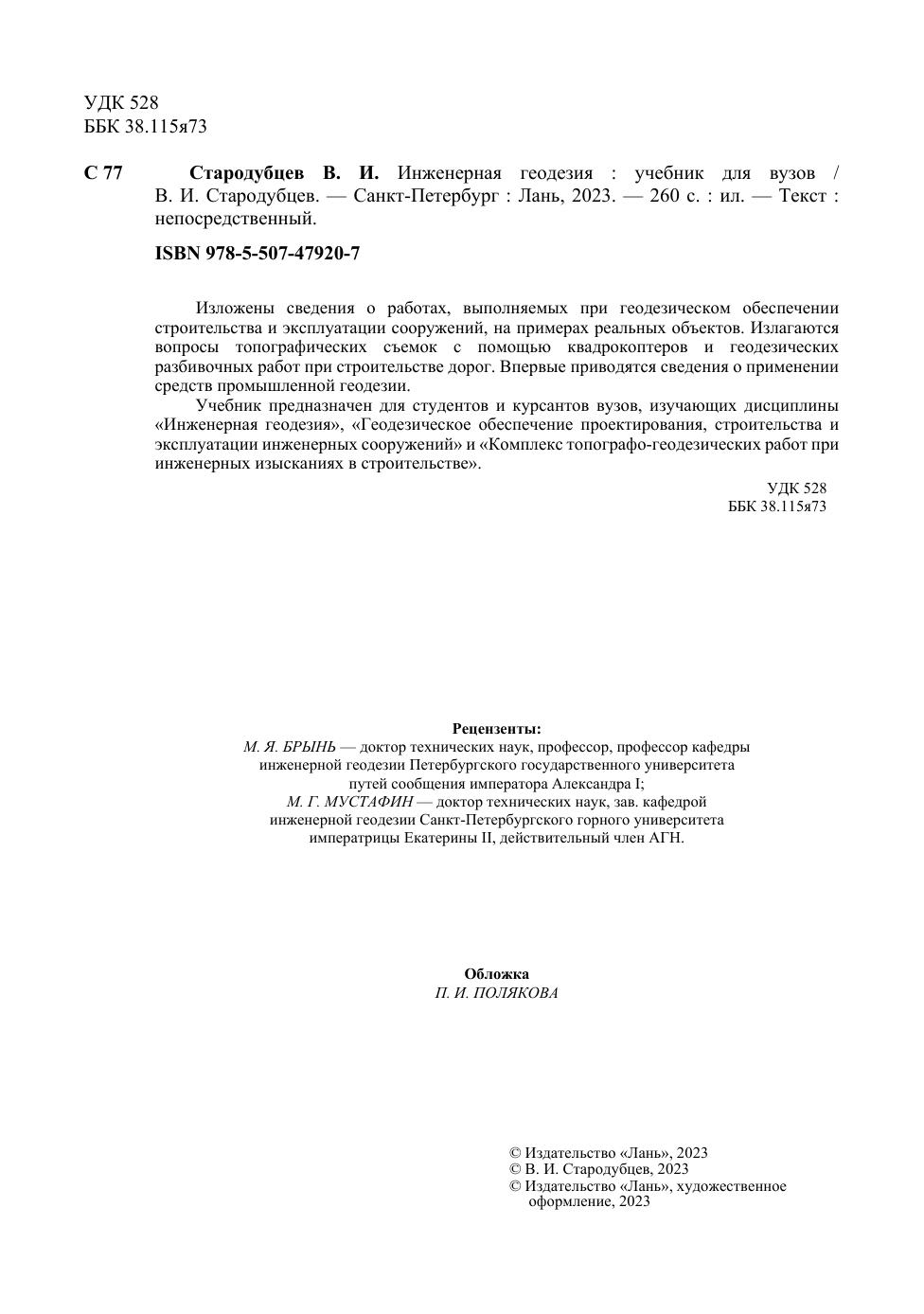 Изложены сведения о работах, выполняемых при геодезическом обеспечении строительства и эксплуатации сооружений, на примерах реальных объектов. Излагаются вопросы топографических съемок с помощью квадрокоптеров и геодезических разбивочных работ при строительстве дорог. Впервые приводятся сведения о применении средств промышленной геодезии. Учебник предназначен для студентов и курсантов вузов, изучающих дисциплины «Инженерная геодезия», «Геодезическое обеспечение проектирования, строительства и эксплуатации инженерных сооружений» и «Комплекс топографо-геодезических работ при инженерных изысканиях в строительстве».