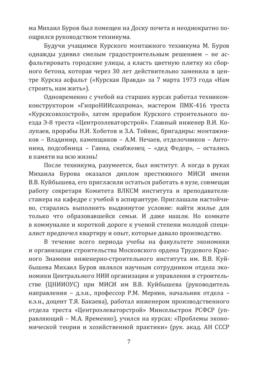 В материалах к биобиблиографии советского и российского экономиста, действительного государственного советника города Москвы 1 класса, доктора экономических наук, профессора Михаила Петровича Бурова представлены сведения о его государственной, научной, педагогической и общественной деятельности.