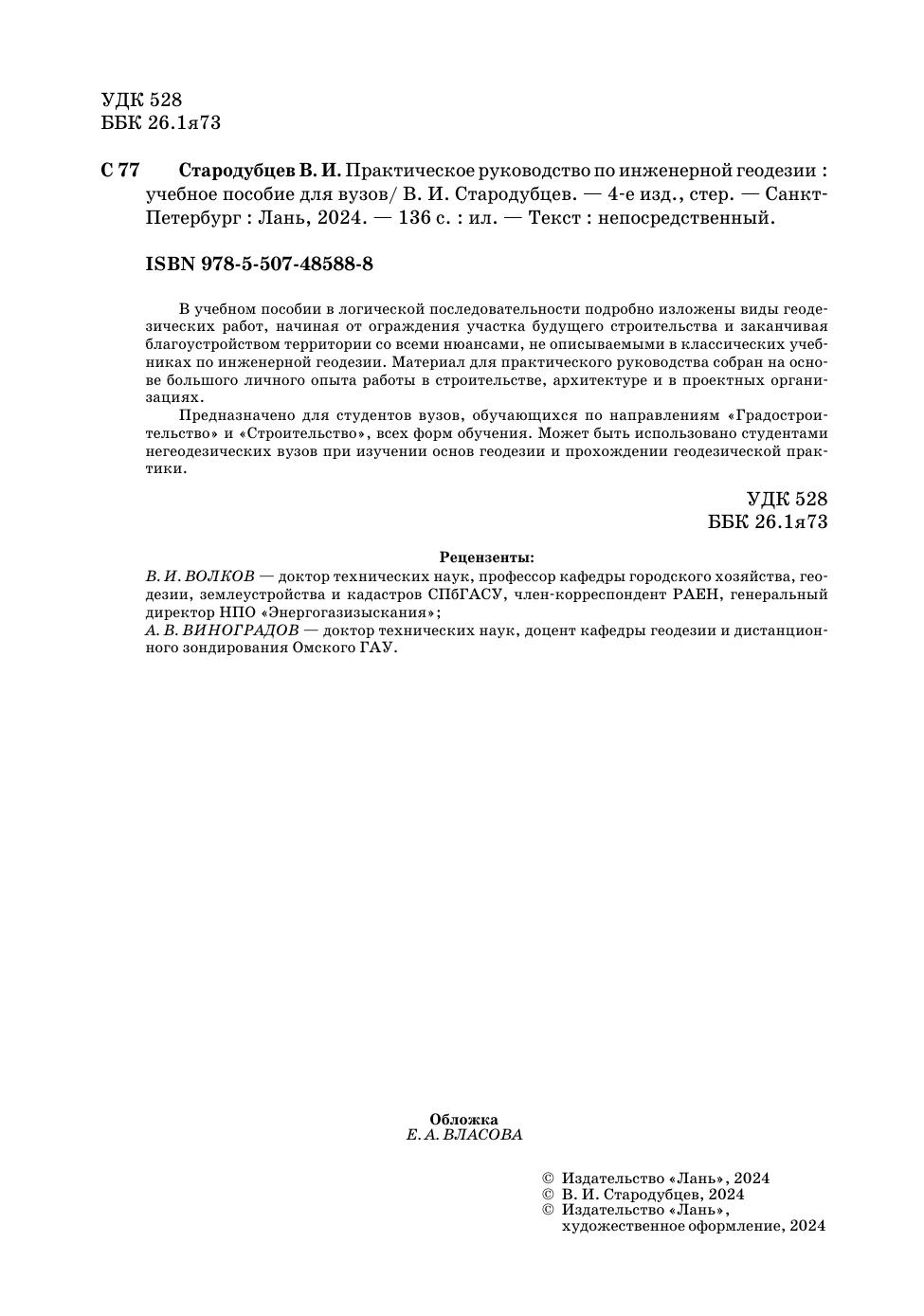 В учебном пособии в логической последовательности подробно изложены виды геодезических работ, начиная от ограждения участка будущего строительства и заканчивая благоустройством территории со всеми нюансами, не описываемыми в классических учебниках по инженерной геодезии. Материал для практического руководства собран на основе большого личного опыта работы в строительстве, архитектуре и в проектных организациях. Предназначено для студентов, обучающихся по направлениям «Градостроительство» и «Строительство», всех форм обучения. Может быть использовано студентами негеодезических вузов при изучении основ геодезии и прохождении геодезической практики.