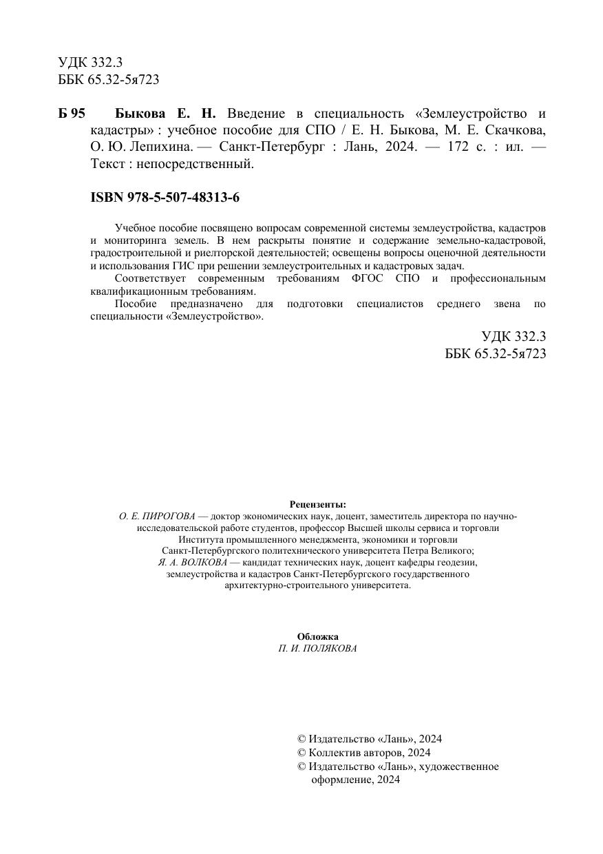 Введение в специальность «Землеустройство и кадастры»