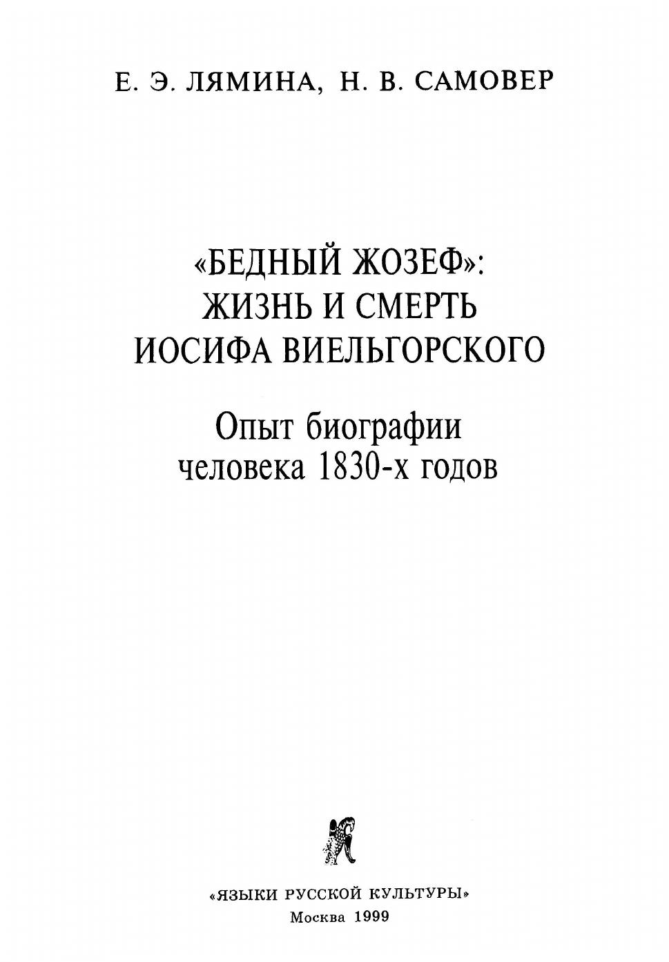 «Бедный Жозеф»: Жизнь и смерть Иосифа Виельгорского: Опыт биографии человека 1830-х годов