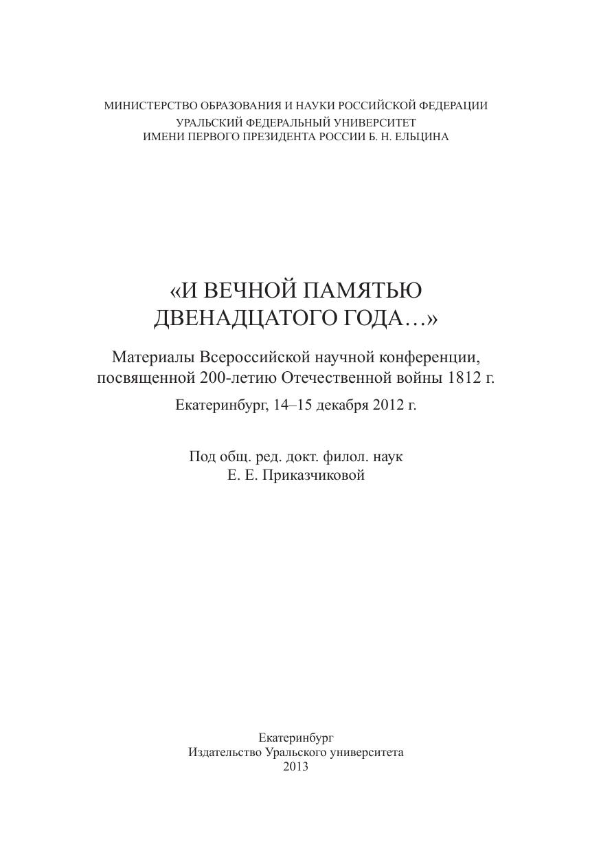 «И вечной памятью двенадцатого года…»