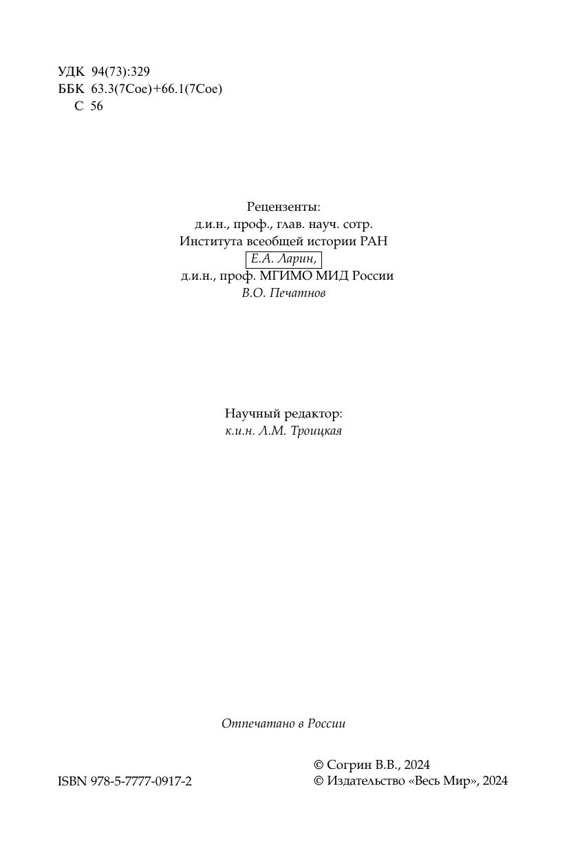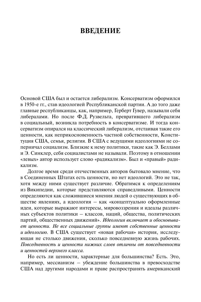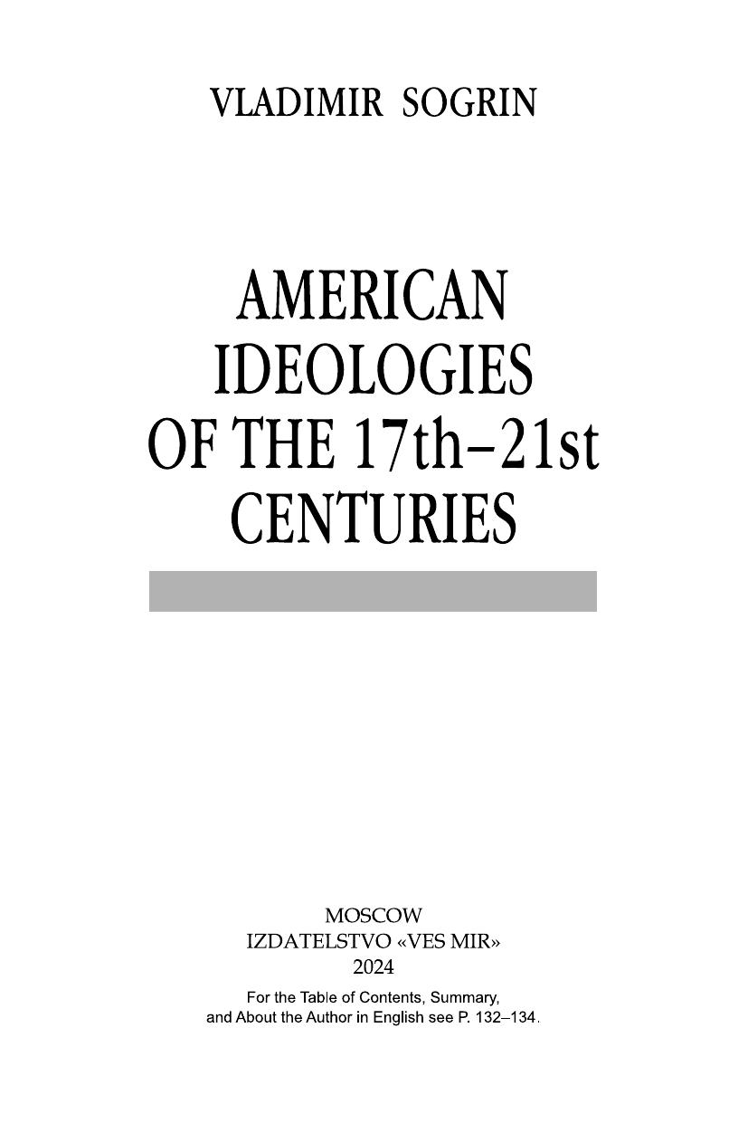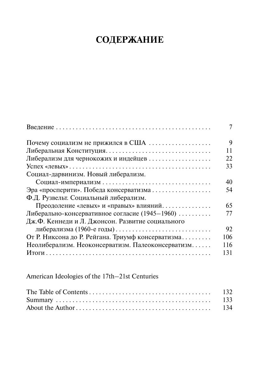 На примере Соединенных Штатов Америки в книге рассмотрены мировые идеологии. Главным в США был либерализм. На разных этапах это были классический либерализм, социальный либерализм, неолиберализм. Консерватизм вырос из классического либерализма, вобрал социал-дарвинизм, включает с конца ХХ в. неоконсерватизм и палеоконсерватизм. На рубеже XIX–XX вв. и в 1930–1940-е гг. в США был известен социализм в разных вариантах. Книга предназначена для широкого круга читателей, интересующихся историей Соединенных Штатов Америки в целом и особенностями их идейно-политического развития в частности.