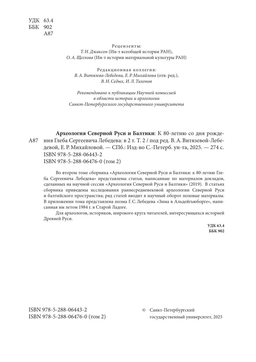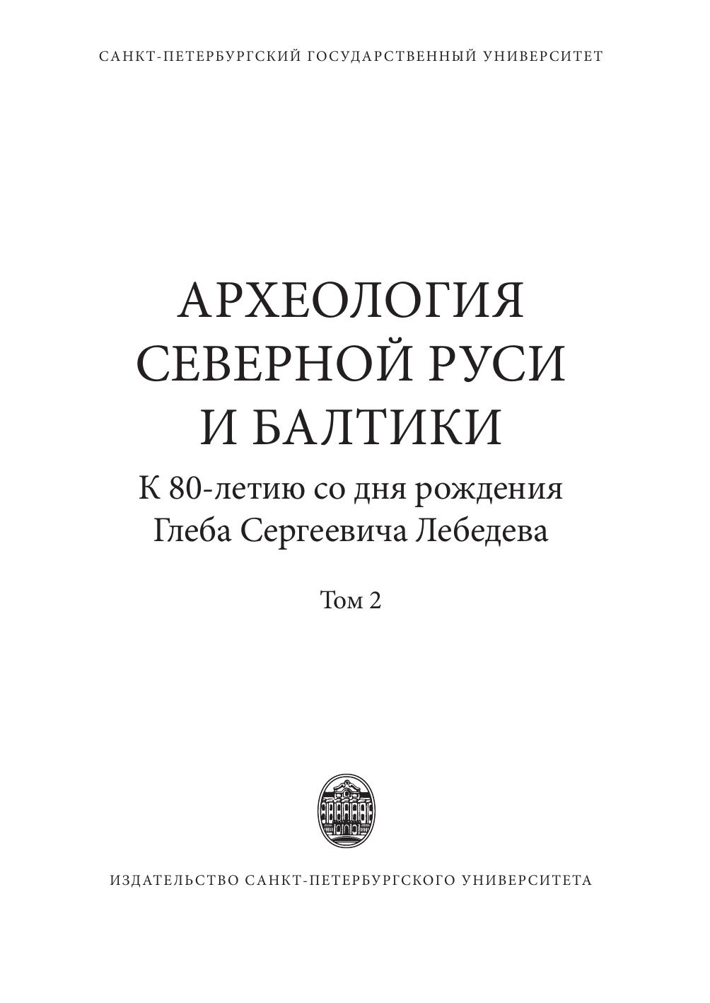Археология Северной Руси и Балтики: К 80-летию со дня рождения Глеба Сергеевич Лебедева: в 2 т. Т 2