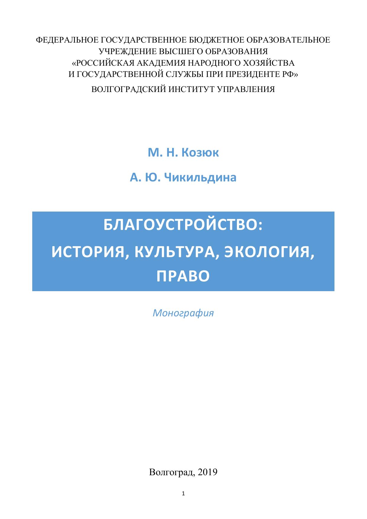 Понятие «благоустройство», применяемое ныне в основном как термин в сфере гра-достроительства и муниципального права имеет достаточно долгую историю использова-ния в праве России. На протяжении XIX века русские ученые-юристы пытались дать опре-деление и обосновать необходимость развития данного феномена, как в законодательстве, так и в практической деятельности администрации. Однако он, будучи связан с менталь-ными основами общества, не помещается в рамки правового института. Поэтому, авторы монографии попытались рассмотреть благоустройство в виде социокультурного кон-цепта, который может пролить свет и на современные проблемы правового регулирова-ния, в том числе и в контексте реализации национальных проектов комфортной городской среды. Работа будет полезной для преподавателей и обучающихся в юридических и архитек-турно-строительных учебных учреждениях, работникам и специалистам муниципальных органов и организаций занимающимся обустройством российских городов и сел.