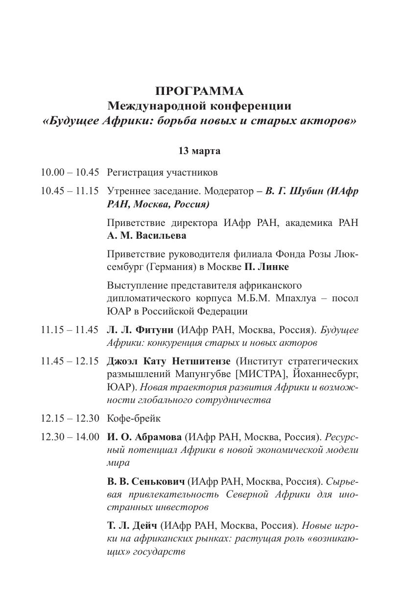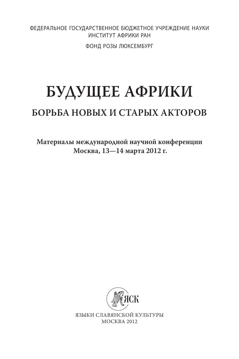 Будущее Африки: борьба старых и новых акторов. Материалы международной научной конференции Москва, 13—14 марта 2012 г.