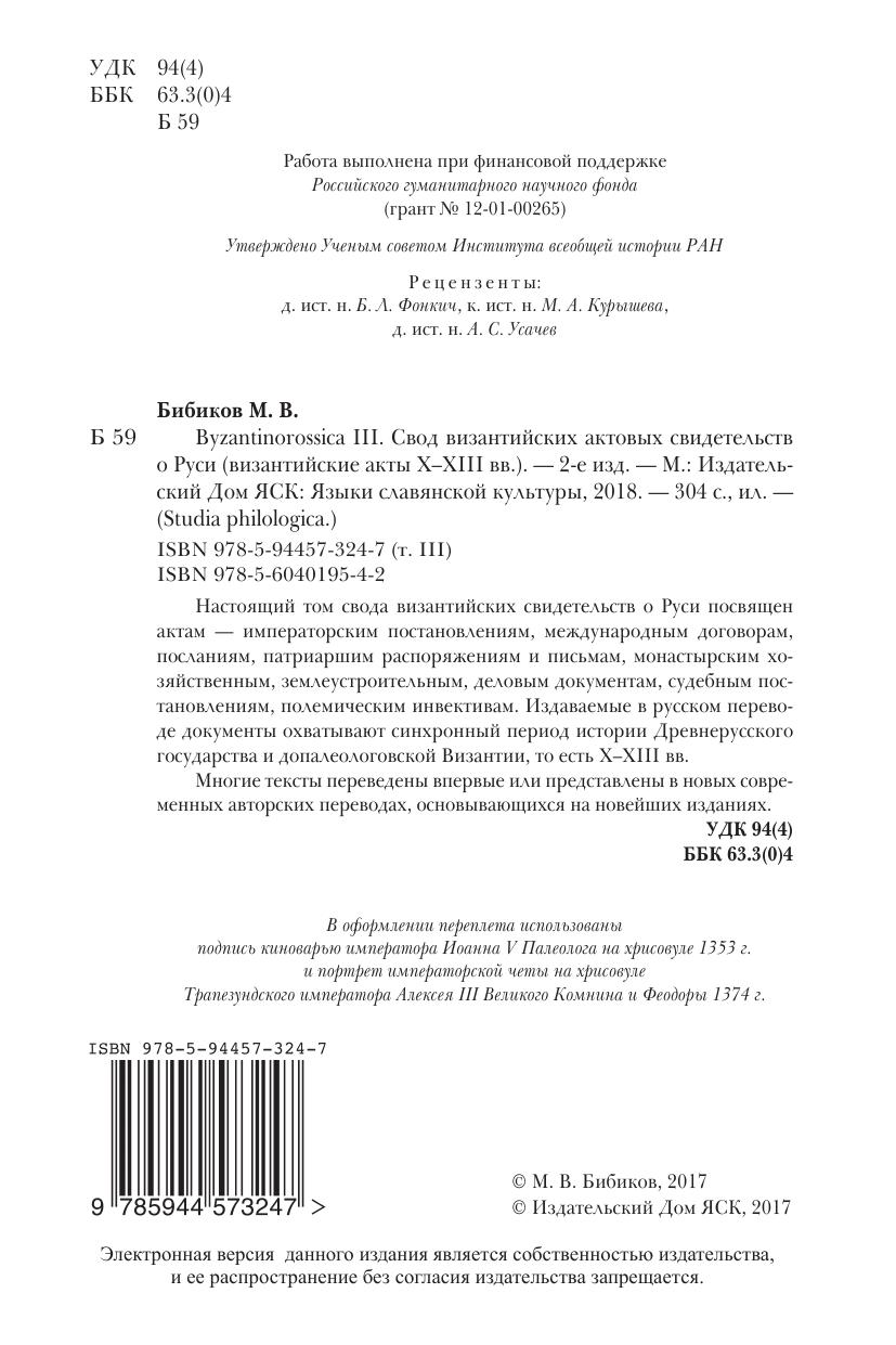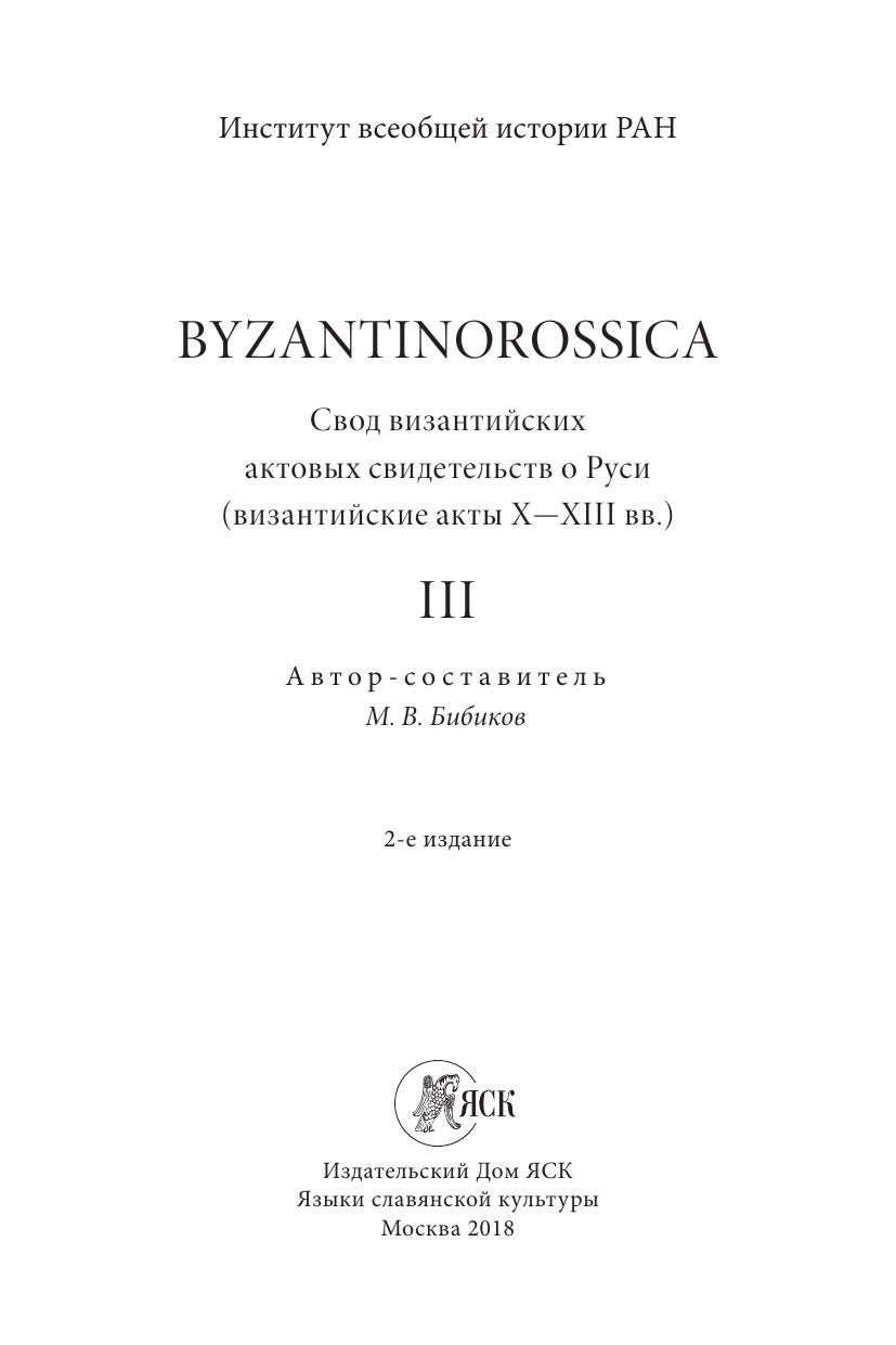Byzantinorossica. Свод византийских актовых свидетельств о Руси (византийские акты X–XIII вв.) Т.3