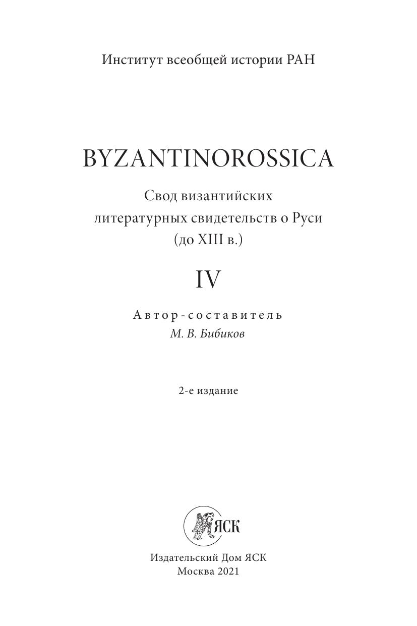 Byzantinorossica. Том IV: Свод византийских литературных свидетельств о Руси (до XIII в.)