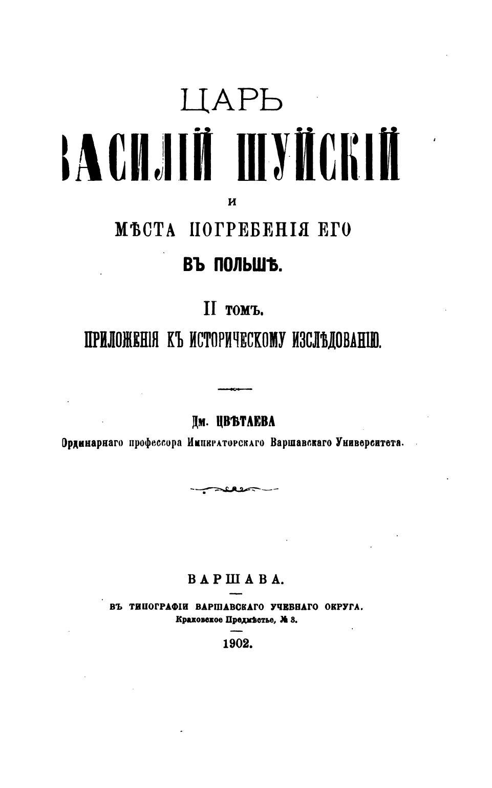 Царь Василий Шуйский и место погребения его в Польше. II том приложения к историческому исследованию