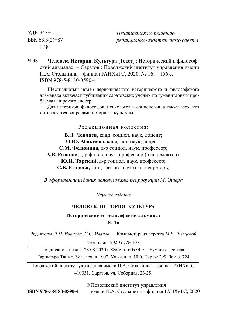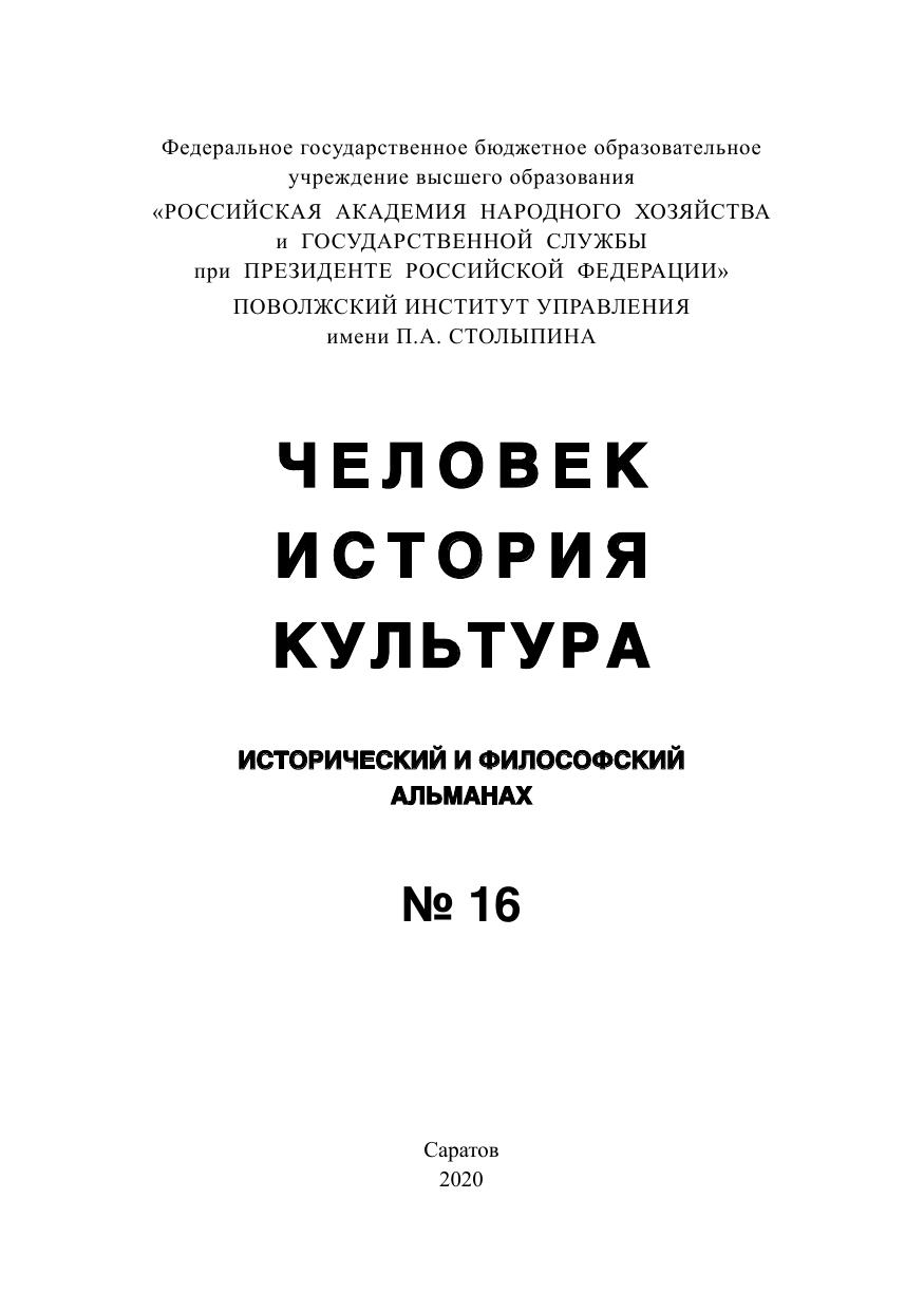 Человек. История. Культура: Исторический и философский альманах. № 16