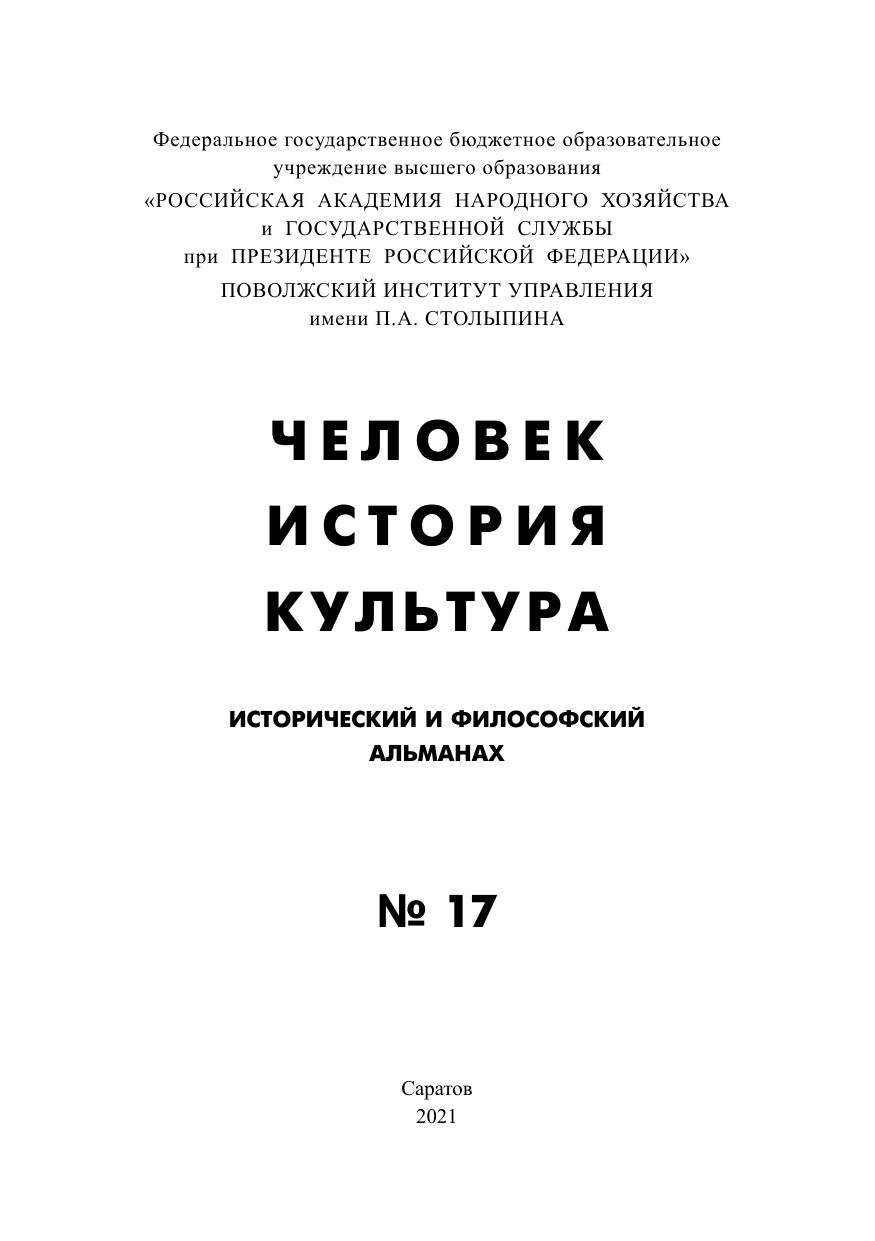 Человек. История. Культура: Исторический и философский альманах. № 17