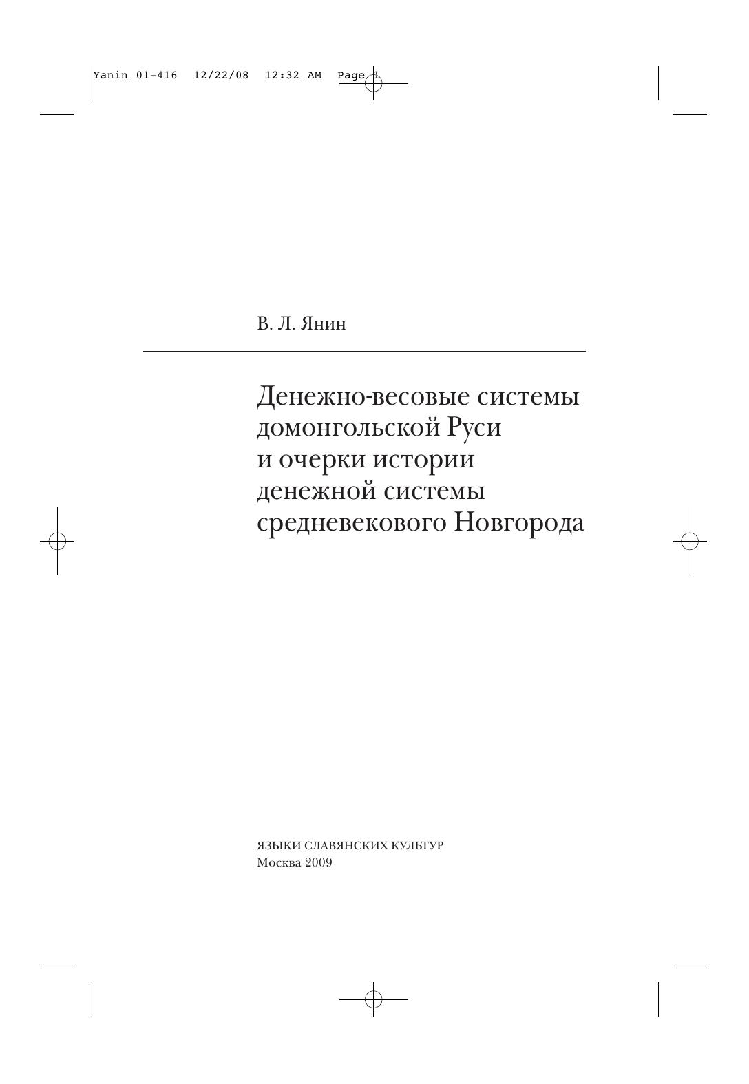 Денежно-весовые системы домонгольской Руси и очерки истории денежной системы средневекового Новгорода