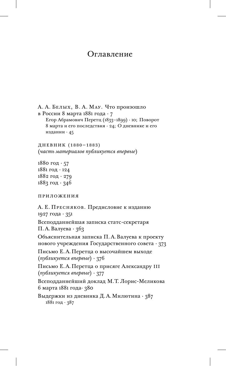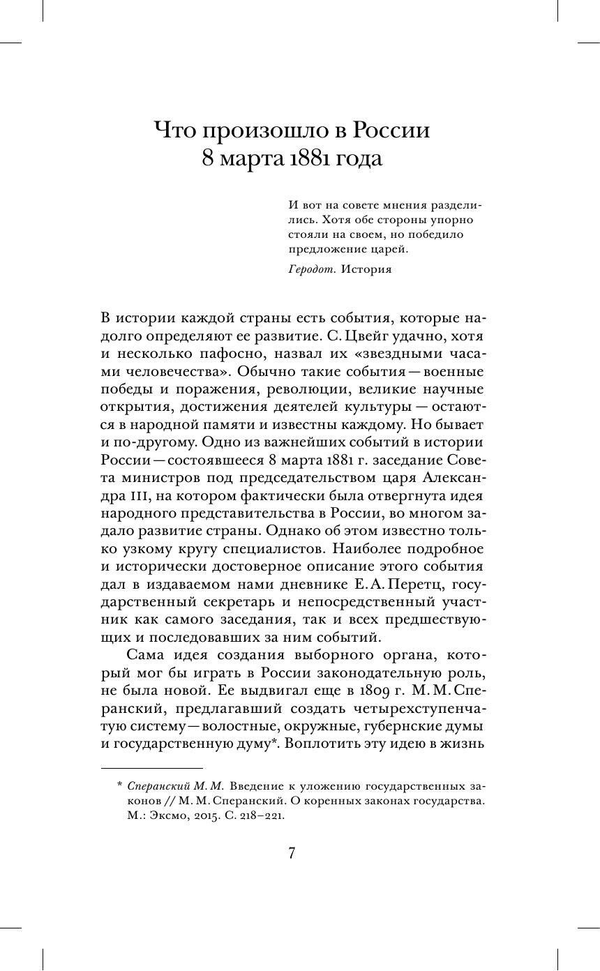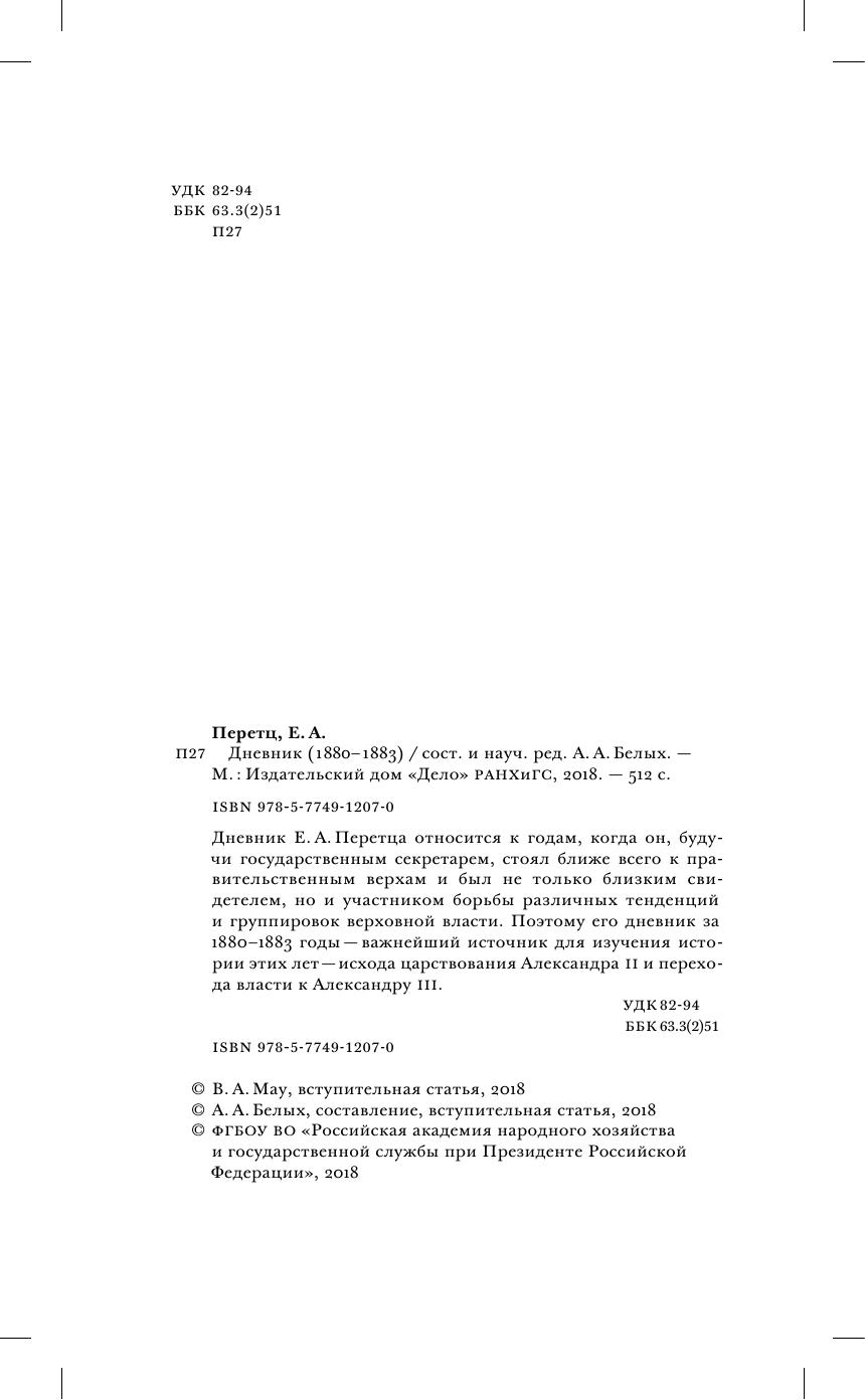 Дневник Е. А. Перетца относится к годам, когда он, будучи государственным секретарем, стоял ближе всего к правительственным верхам и был не только близким свидетелем, но и участником борьбы различных тенденций и группировок верховной власти. Поэтому его дневник за 1880–1883 годы — важнейший источник для изучения истории этих лет — исхода царствования Александра II и перехода власти к Александру III.