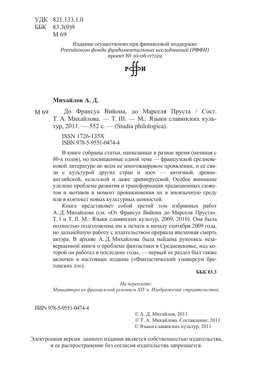 В книге собраны статьи, написанные в разное время (начиная с 80-х годов), но посвященные одной теме - французской средневековой литературе во всем ее многожанровом проявлении, и ее связи с культурой других стран и эпох - античной, древнеанглийской, кельтской и даже древнерусской. Особое внимание уделено проблеме развития и трансформации традиционных сюжетов и мотивов в момент проникновения их в иноязычную среду или в контекст новых культурных ценностей. Книга представляет собой третий том избранных работ А.Д.Михайлова. Она была полностью подготовлена им к печати к началу сентября 2009 года, но дальнейшую работу с издательством прервала внезапная смерть автора. В архиве А.Д.Михайлова была найдена рукопись незавершенной книги о проблеме фантастики в Средневековье, над которой он работал в последние годы, - первый ее раздел был также включен в настоящее издание ("Фантастический универсум бретонских лэ").