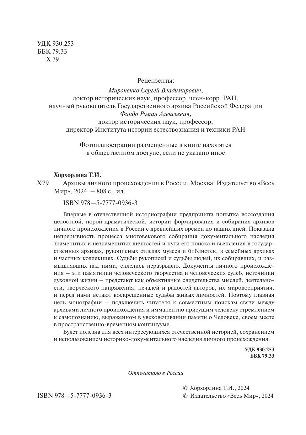 Впервые в отечественной историографии предпринята попытка воссоздания целостной, порой драматической, истории формирования и собирания архивов личного происхождения в России с древнейших времен до наших дней. Показана непрерывность процесса многовекового собирания документального наследия знаменитых и незнаменитых личностей и пути его поиска и выявления в государственных архивах, рукописных отделах музеев и библиотек, в семейных архивах и частных коллекциях. Судьбы рукописей и судьбы людей, их собиравших, и размышлявших над ними, сплелись неразрывно. Документы личного происхождения – эти памятники человеческого творчества и человеческих судеб, источники духовной жизни – предстают как объективные свидетельства мыслей, деятельности, творческого напряжения, печалей и радостей авторов, их мировосприятия, и перед нами встают воскрешенные судьбы живых личностей. Поэтому главная цель монографии – подключить читателя к совместным поискам связи между архивами личного происхождения и имманентно присущим человеку стремлением к самопознанию, выраженном в увековечивании памяти о Человеке, своем месте в пространственно-временном континууме. Будет полезна для всех интересующихся отечественной историей, сохранением и использованием историко-документального наследия личного происхождения.