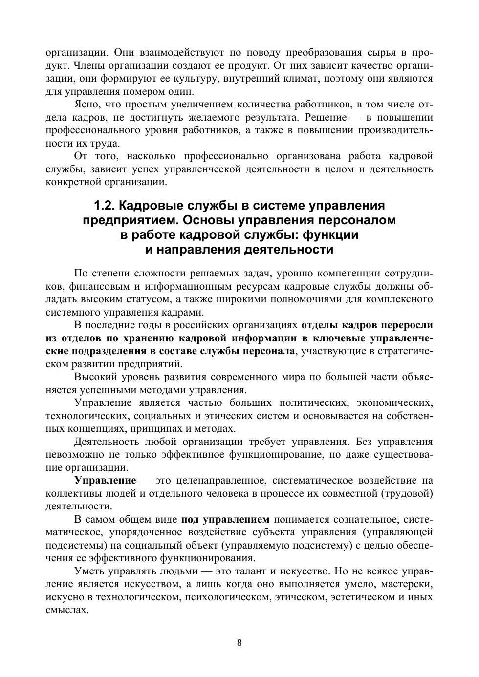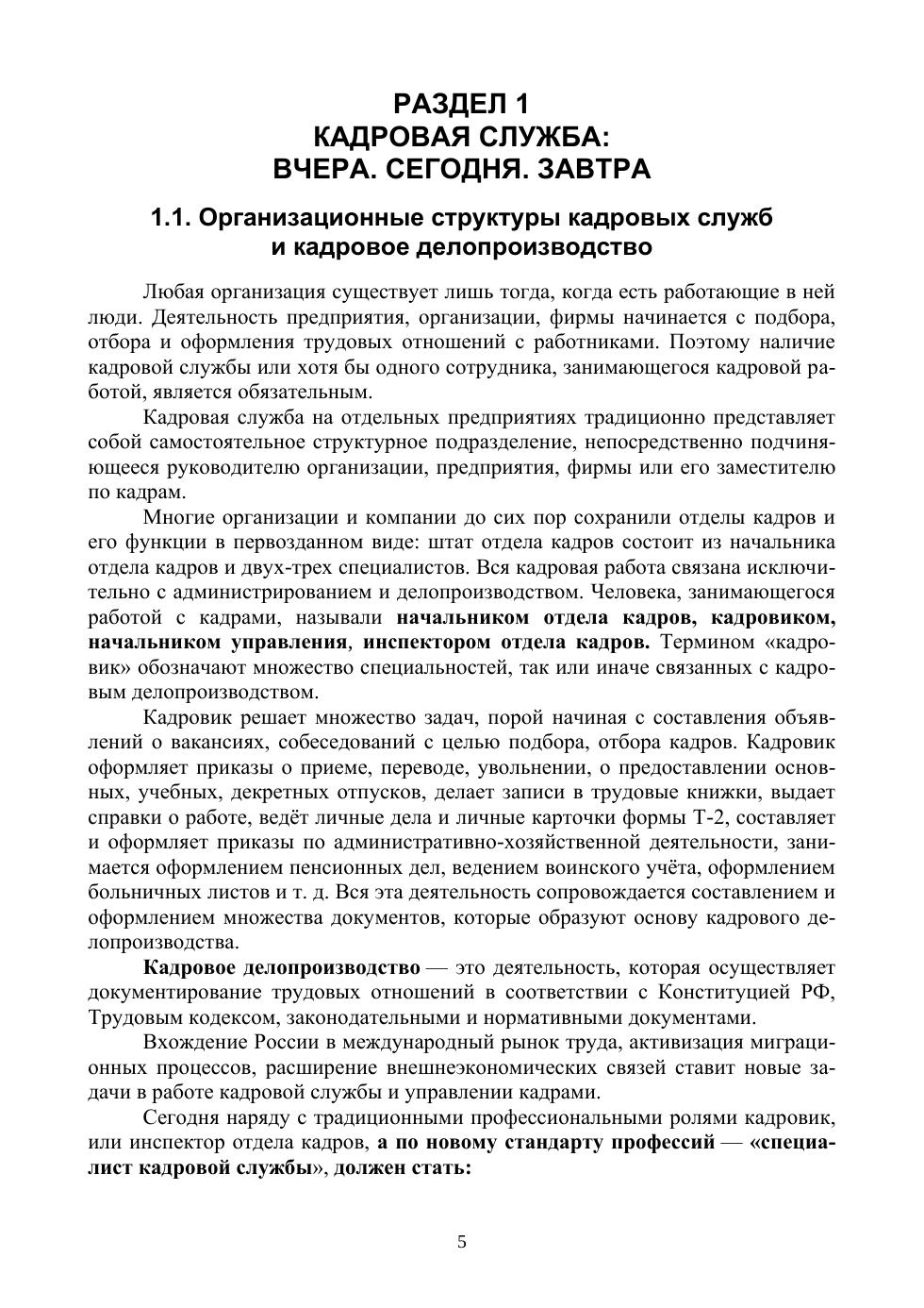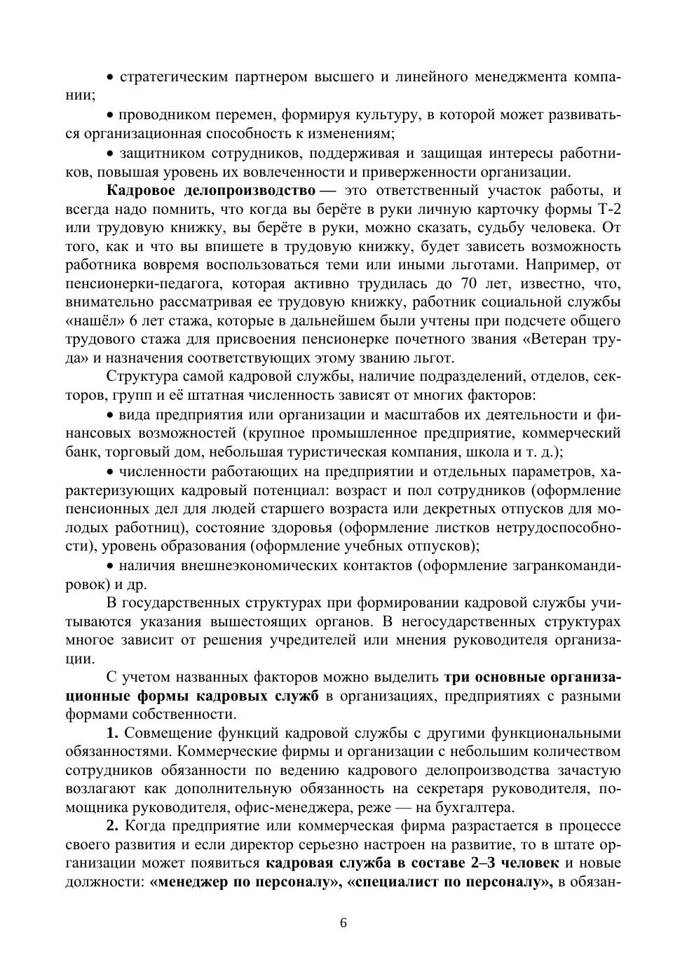 Учебное пособие составлено на основе программы дисциплины «Документационное обеспечение управления» и предназначено для студентов учебных заведений высшего образования, обучающихся по специальностям «Менеджмент», «Управление персоналом», «Государственное и муниципальное управление» и др. При составлении учтены изменения, внесенные в Трудовое законодательство в 2021 году. Дана характеристика основным видам кадровых документов, образующихся в процессе оформления трудовых отношений с момента рассмотрения персональных документов соискателя до увольнения. Рассмотрена организационно-распорядительная документация с примерами составления и оформления документов в соответствии с требованиями ГОСТ Р 7.0.972016, документы которой выполняют типовые управленческие функции и являются составной частью документооборота кадровых служб. Приведена краткая информация о преобразовании кадровых служб, профессиях будущего и о пути «кадровика» в HR-менеджеры. С целью формирования необходимых компетенций разработан Практикум для текущего и итогового контроля с вопросами, тестом, заданиями. В приложении приведены примеры локальных нормативных актов в области делопроизводства. Учебное пособие может быть полезным для преподавателей, руководителей малых предприятий, а также для обучающихся в Центрах дополнительного профессионального образования и всех, кто самостоятельно желает освоить базовые знания из области общего и кадрового делопроизводства. Структура и подробное изложение материала, понятное для усвоения, позволят использовать учебное пособие при любой форме обучения: очной, заочной, дистанционной, в формате онлайн.