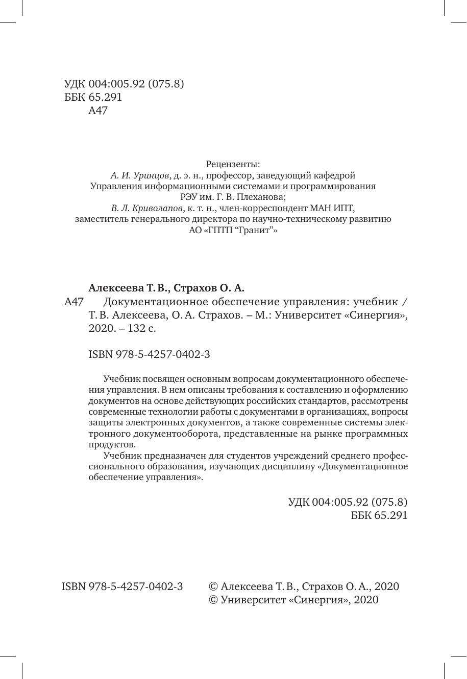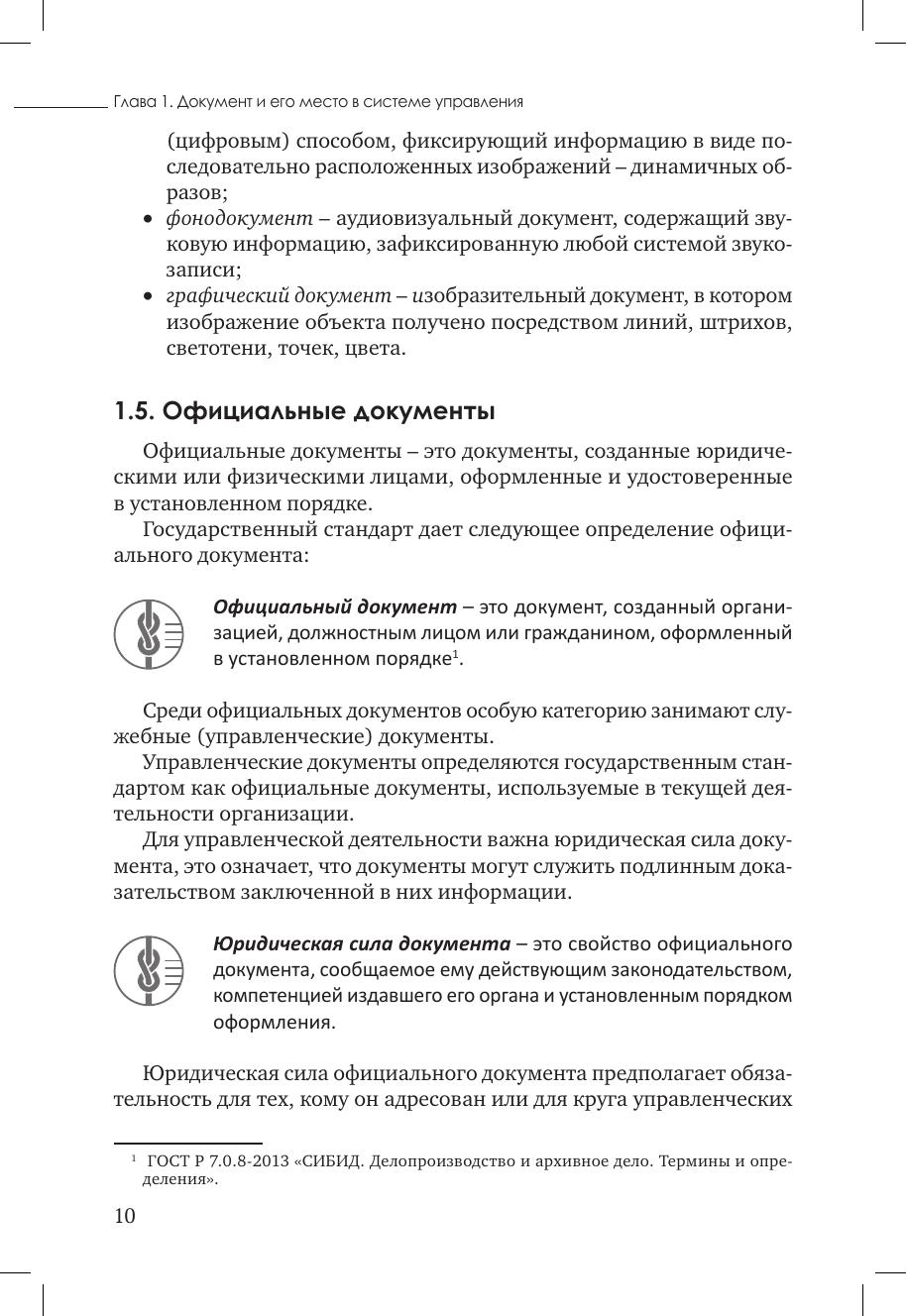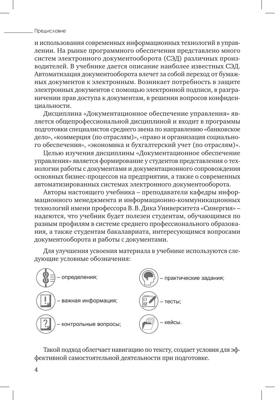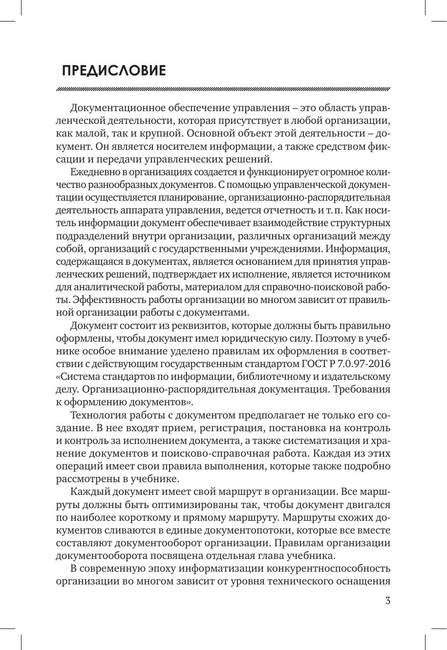 Учебник посвящен основным вопросам документационного обеспечения управления. В нем описаны требования к составлению и оформлению документов на основе действующих российских стандартов, рассмотрены современные технологии работы с документами в организациях, вопросы защиты электронных документов, а также современные системы электронного документооборота, представленные на рынке программных продуктов. Учебник предназначен для студентов учреждений среднего профессионального образования, изучающих дисциплину «Документационное обеспечение управления»
