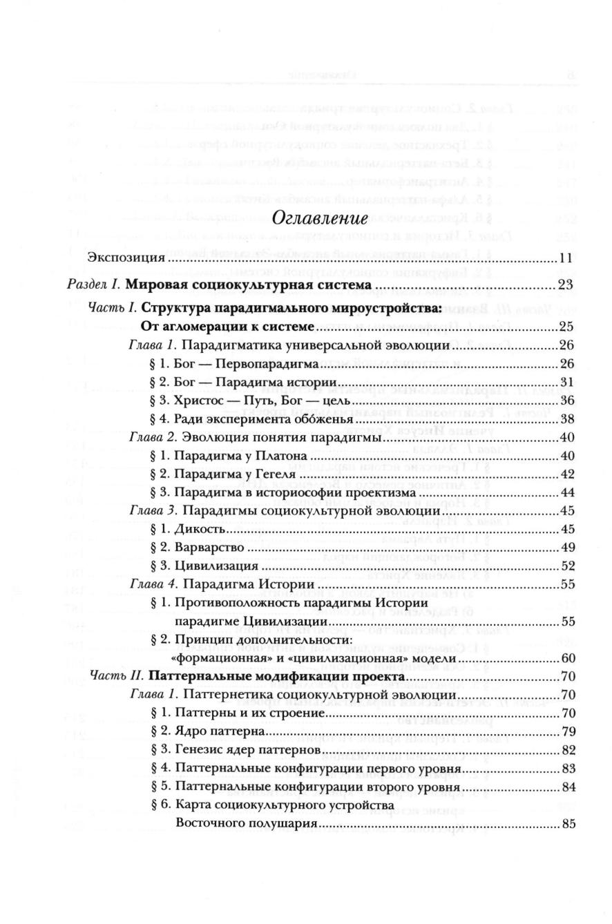 Линеарные XIX века и плюралистические XX века концепции философии истории устарели, они между собой соотносятся как тезис и антитезис. Автор настоящей книги конструирует историософию XXI века как синтез историософии двух предшествующих столетий. Он рассматривает Мировой Дух как Первопарадигму Универсальной эволюции со специфическими парадигмами каждой из её ветвей. Человеческое существование определяется как парадигмами социокультурной эволюции, так и парадигмальными проектами истории, между понятиями «социокультурная эволюция» и «история» он устанавливает принципиальное различие. Взаимодействие между особыми «культурными типами» («цивилизациями») обеспечивается специфическим сочетанием в каждом «культурном типе» элементарных проектных единиц, которые автор называет паттернами.