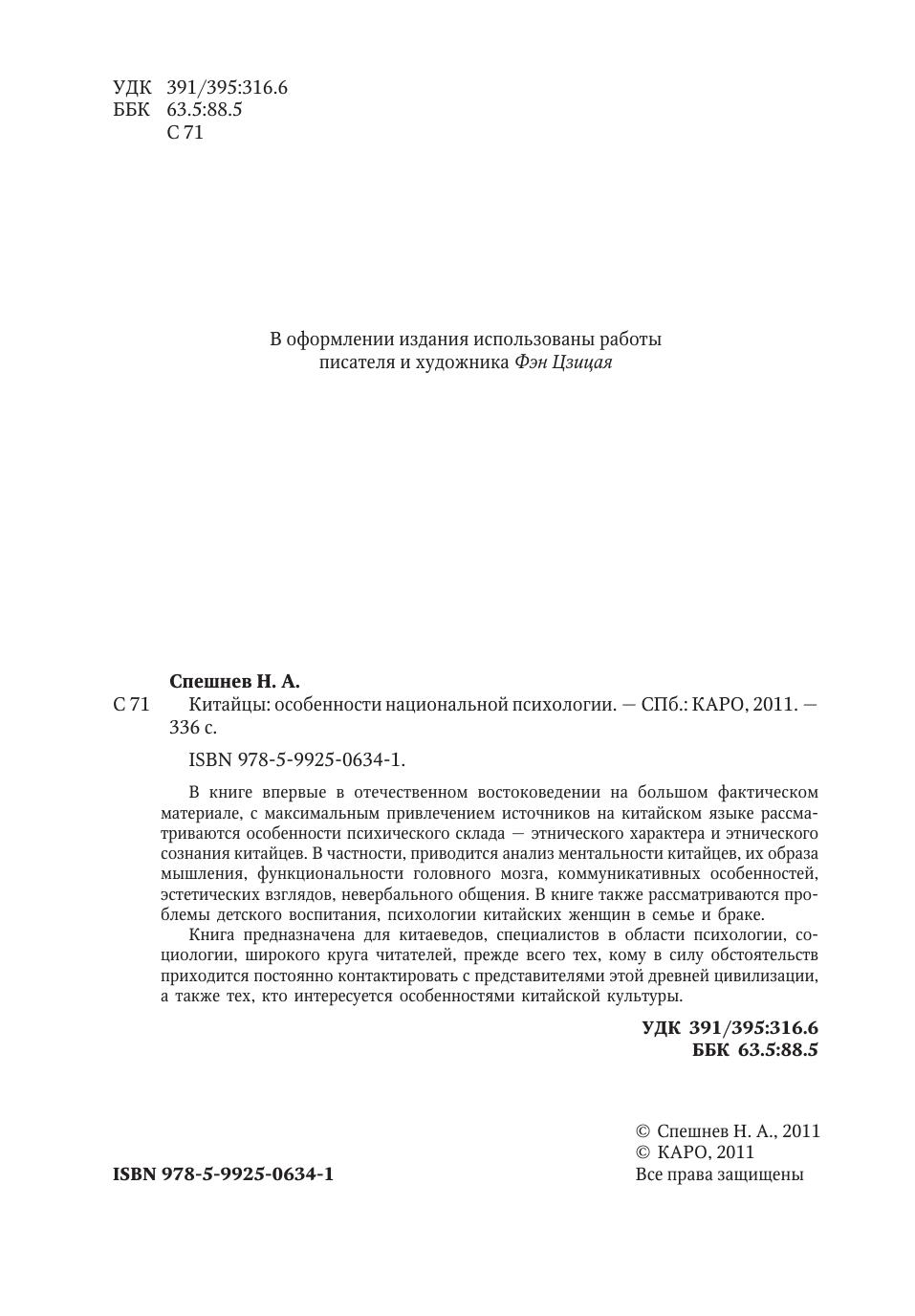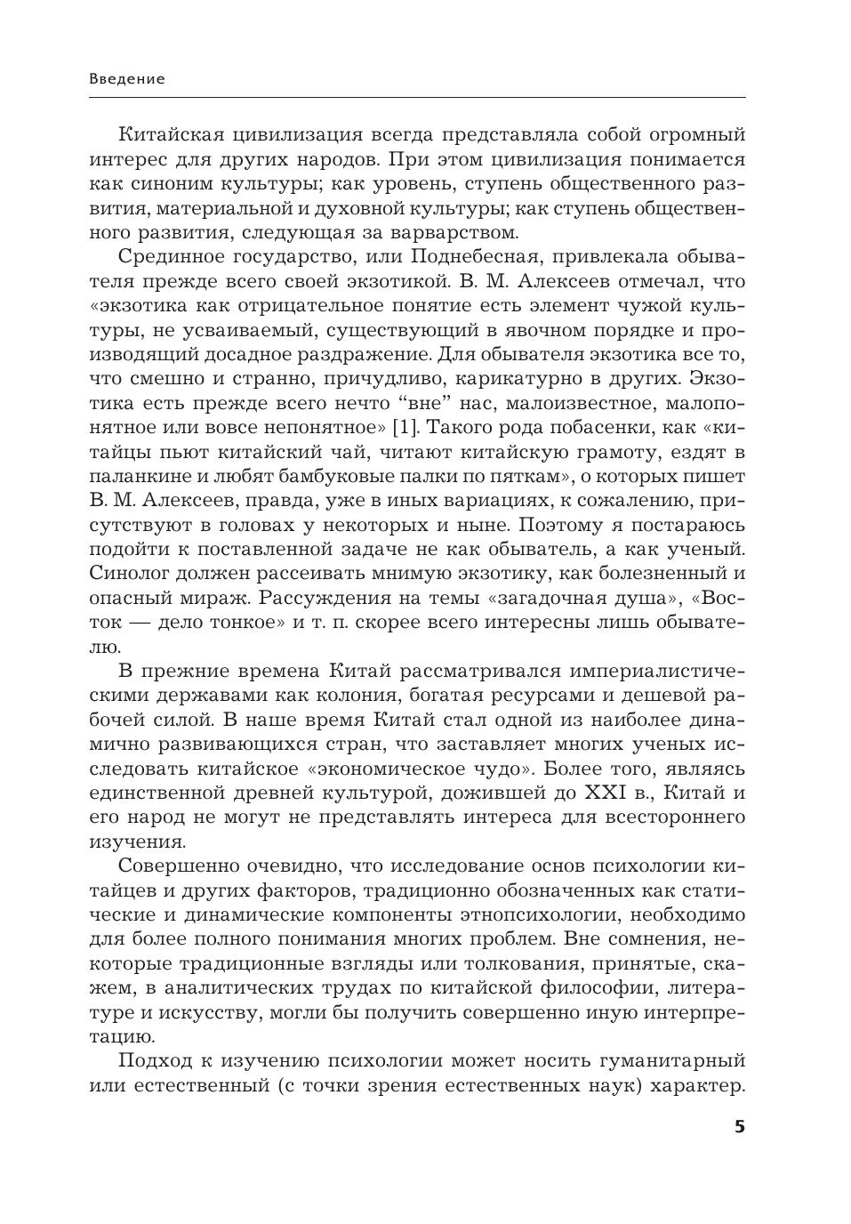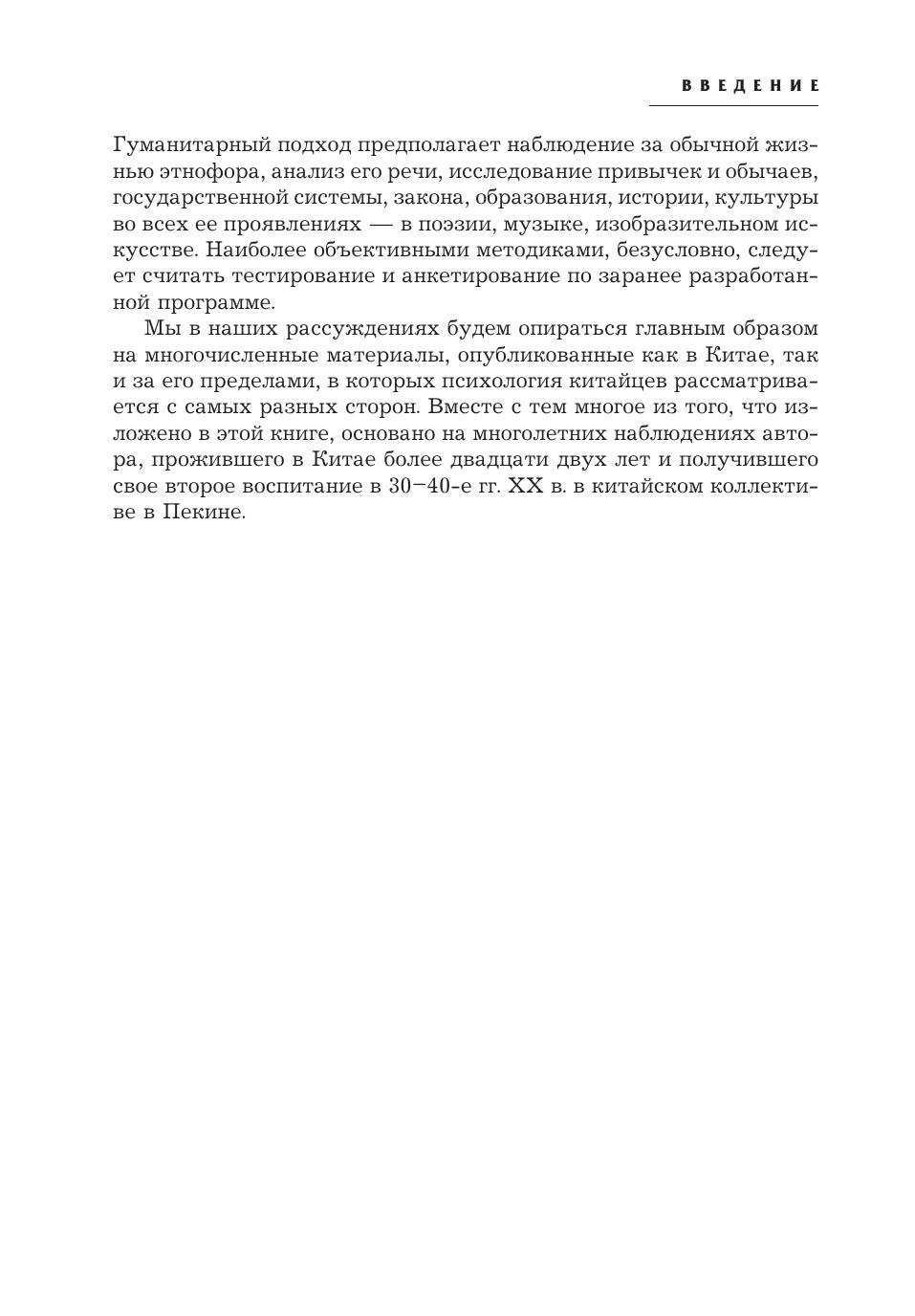В книге впервые в отечественном востоковедении на большом фактическом материале, с максимальным привлечением источников на китайском языке рассматриваются особенности психического склада — этнического характера и этнического сознания китайцев. В частности, приводится анализ ментальности китайцев, их образа мышления, функциональности головного мозга, коммуникативных особенностей, эстетических взглядов, невербального общения. В книге также рассматриваются проблемы детского воспитания, психологии китайских женщин в семье и браке. Книга предназначена для китаеведов, специалистов в области психологии, социологии, широкого круга читателей, прежде всего тех, кому в силу обстоятельств приходится постоянно контактировать с представителями этой древней цивилизации, а также тех, кто интересуется особенностями китайской культуры.