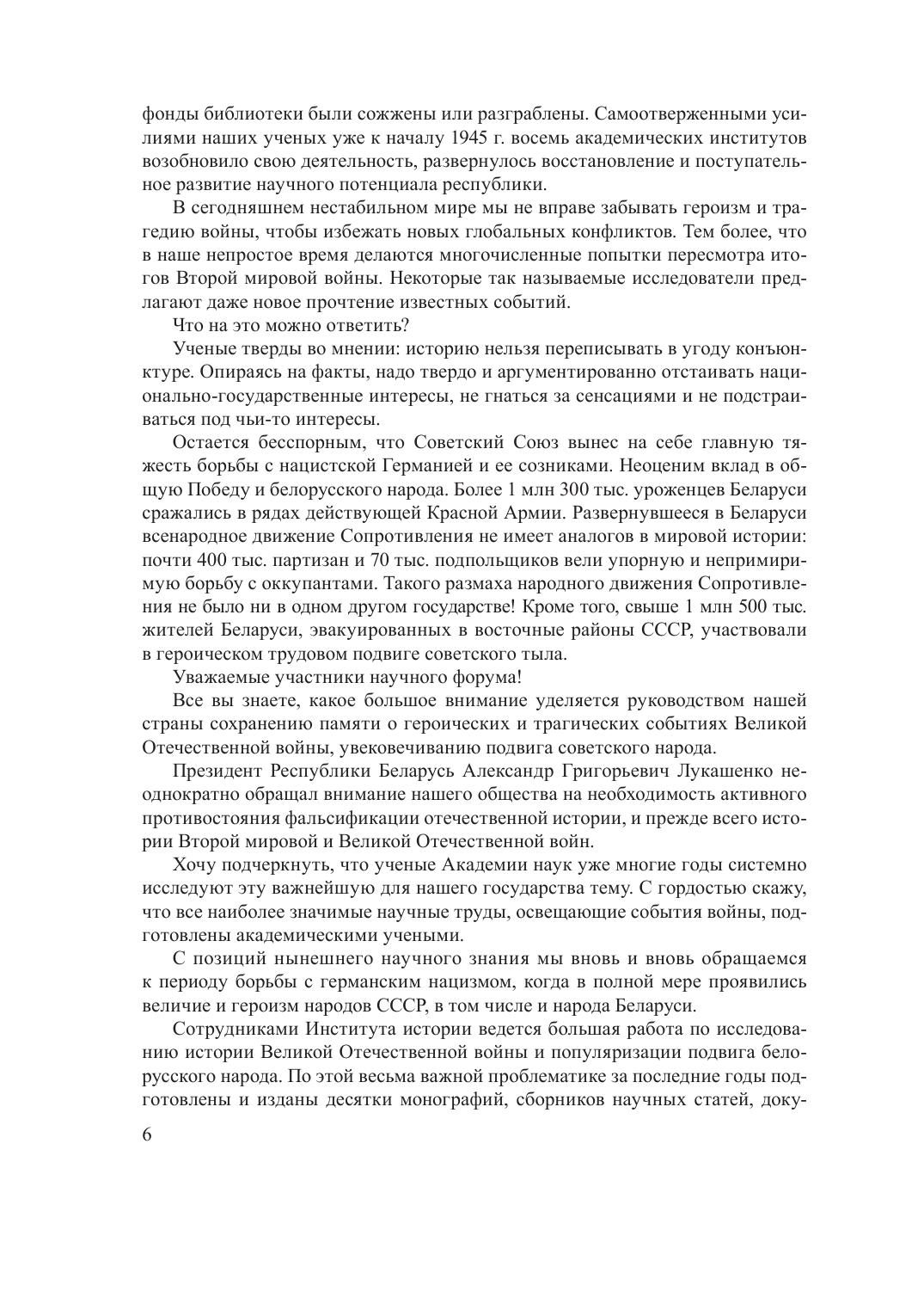В сборнике представлены статьи, посвященные вопросам оборонительных боев Красной Армии в июне – августе 1941 г., преступлений оккупационного режима, военной повседнев ности, всенародной борьбы с немецко-фашистскими захватчиками, освобождению Беларуси от германских войск, наступательным операциям 1944–1945 гг., увековечению памяти о Великой Отечественной войне. Рекомендован ученым, преподавателям, студентам и всем, кто интересуется историей.