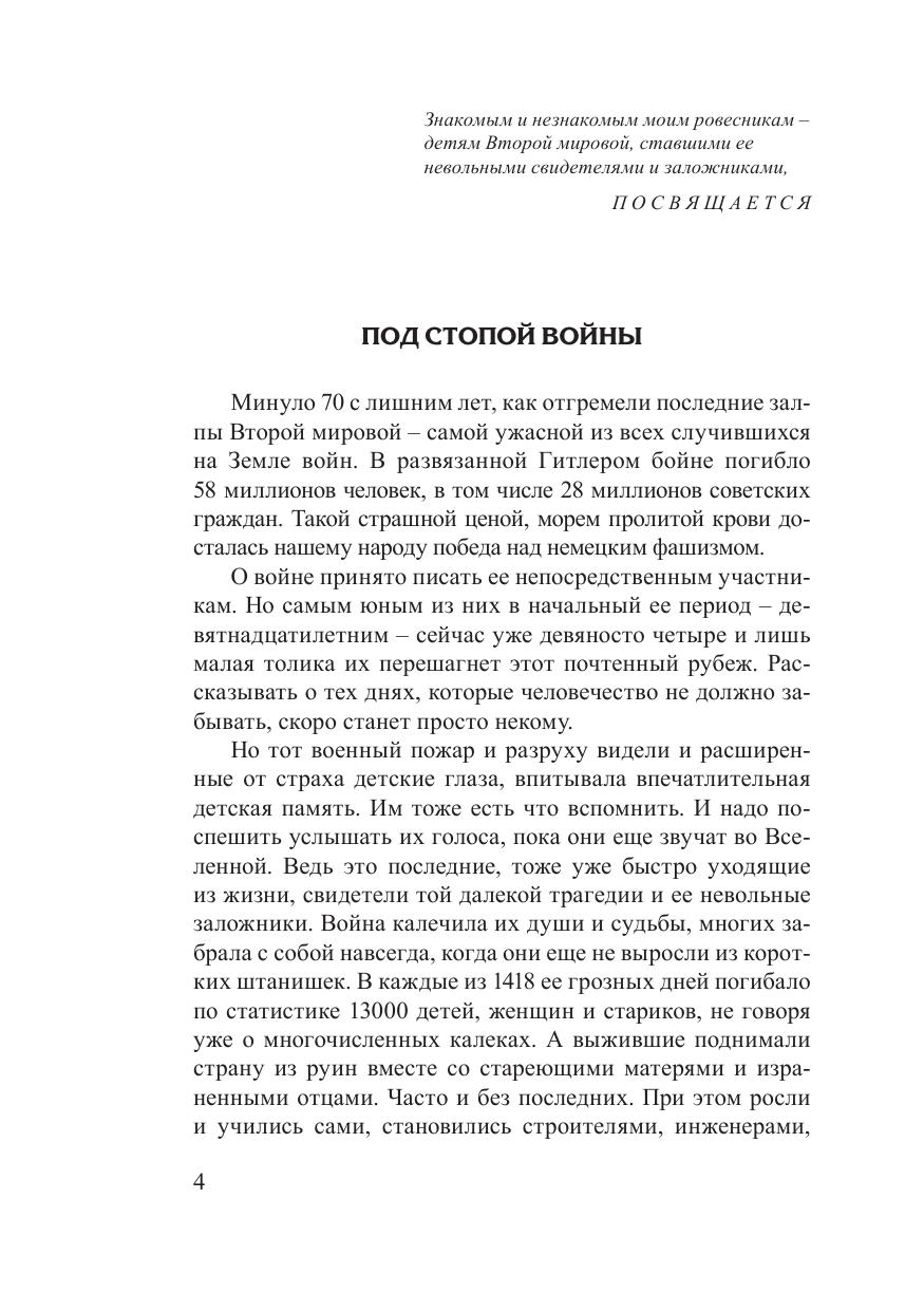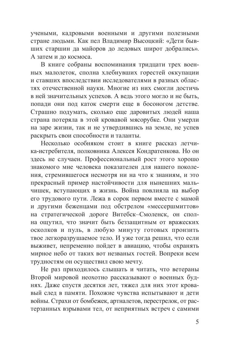 Собраны воспоминания детей войны, переживших безмерные ужасы и беды оккупации в разных местах нашей великой Родины, которая тогда называлась Советский Союз. Они уцелели в том аду. Позднее стали исследователями в различных областях отечественной науки. Многие смогли достичь значительных успехов. Книга будет полезна преподавателям школ, вузов в деле воспитания патриотизма, а также всем читателям, интересующимся историей Великой Отечественной войны.