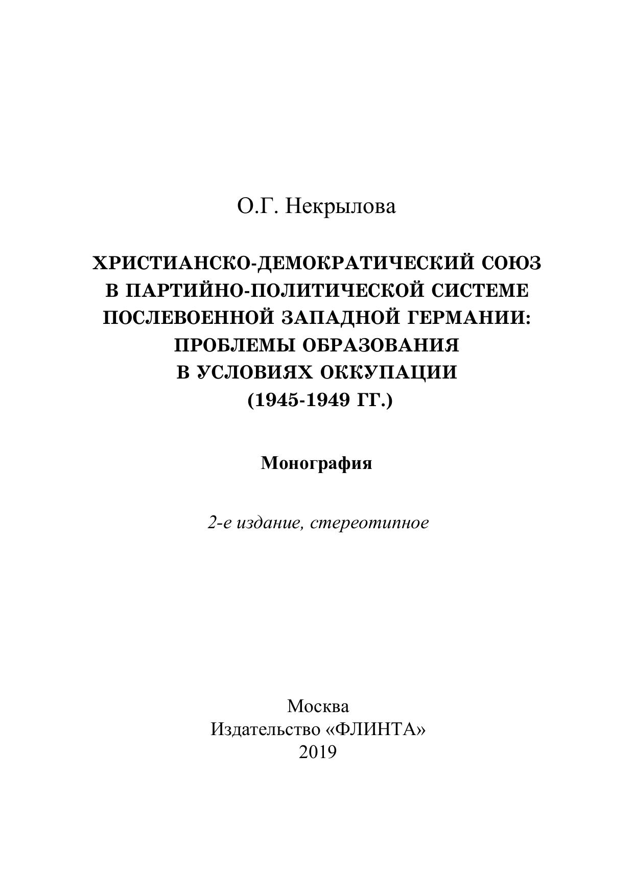 Христианско-демократический союз в партийно-политической системе послевоенной Западной Германии: проблемы образования в условиях оккупации (1945-1949 гг.)